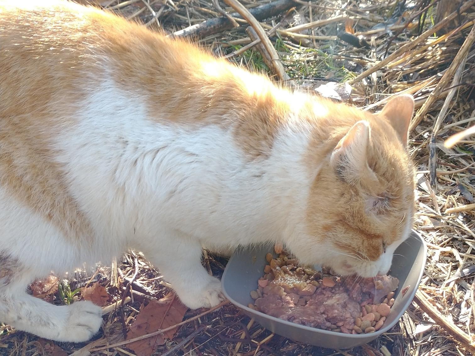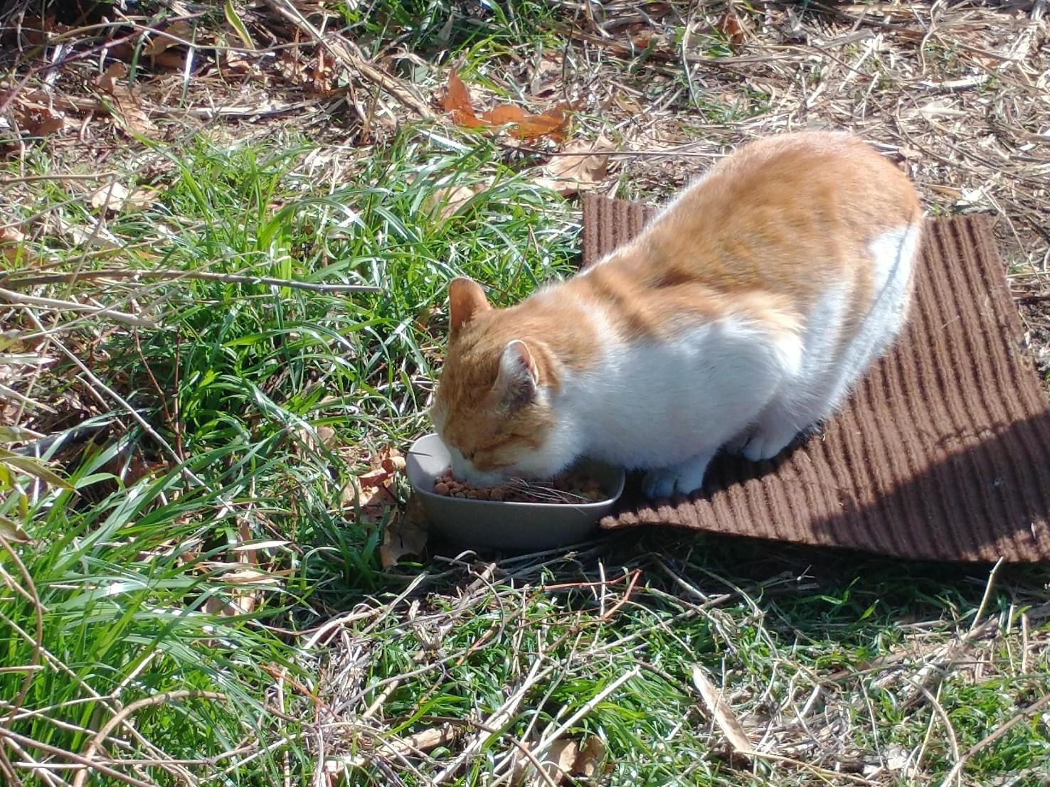 最初の頃は、ご飯は食べに来ますがすぐ逃げてしまう子で、まったく鳴きませんでした。