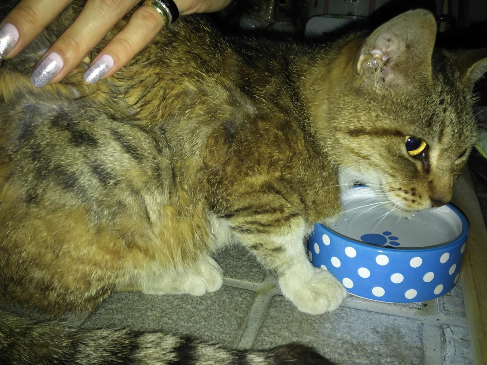 キジトラ、しろたび、ちいさな子です。超高齢なので歯はなく、右太ともあたりに禿げがある。左耳は欠けており、目はゴールドで、高齢の為余りグルーミングが出来ていない野良猫でした。お腹の調子が悪く、うちで介抱しておりました。10年近くうちに住み着いており、帰ってこなくなることはありませんでした。いなくなる前日まで帰宅し、食事もしておりますが、3日の早朝から出かけたままです。慣れている人以外には警戒し近づきません。居なくなってから心配で眠れず1時間に1度自宅周囲を捜索しておりますが、見当たらず・・・【トト】または【トラ】と呼ぶと返事をします。年齢もかなりの高齢で体調も芳しくなかったので何とも言えない状況ですが、目撃されているならと思い書き込みました。お願いします!!!