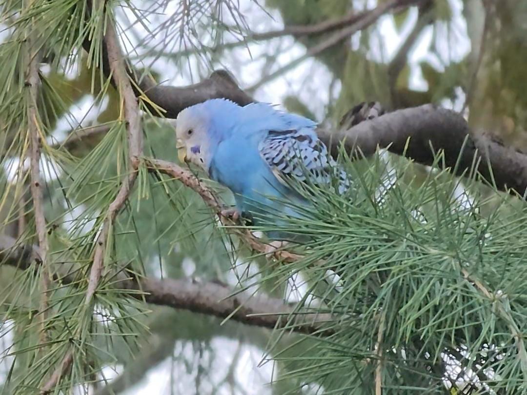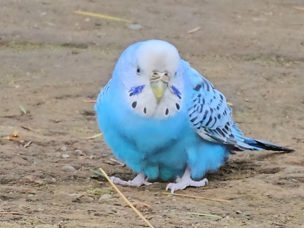 その日、インコは地面で餌を探していて、あまり人を怖がっていない様子でした。しゃがんで近づいてもすぐには飛び立ちませんでした。無事に飼い主さんと再会できますように。