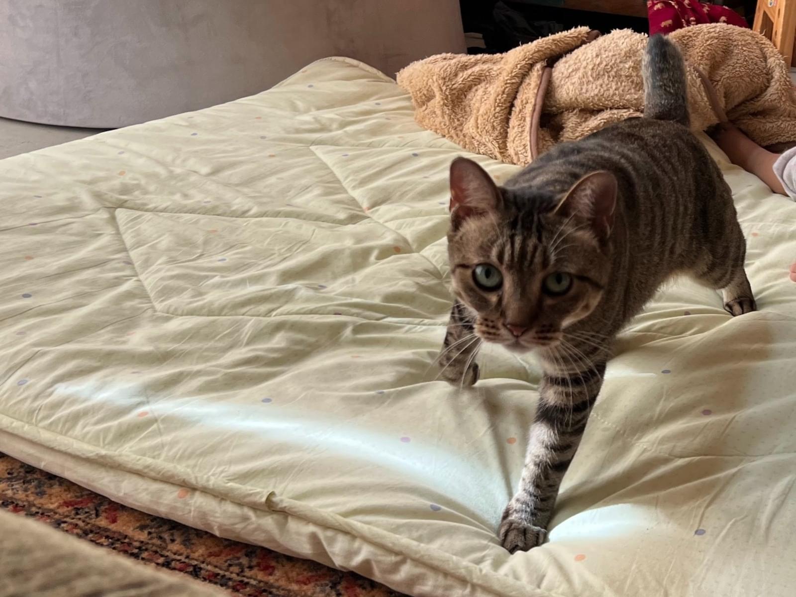 キジトラで人懐っこいですが臆病なところがあります。