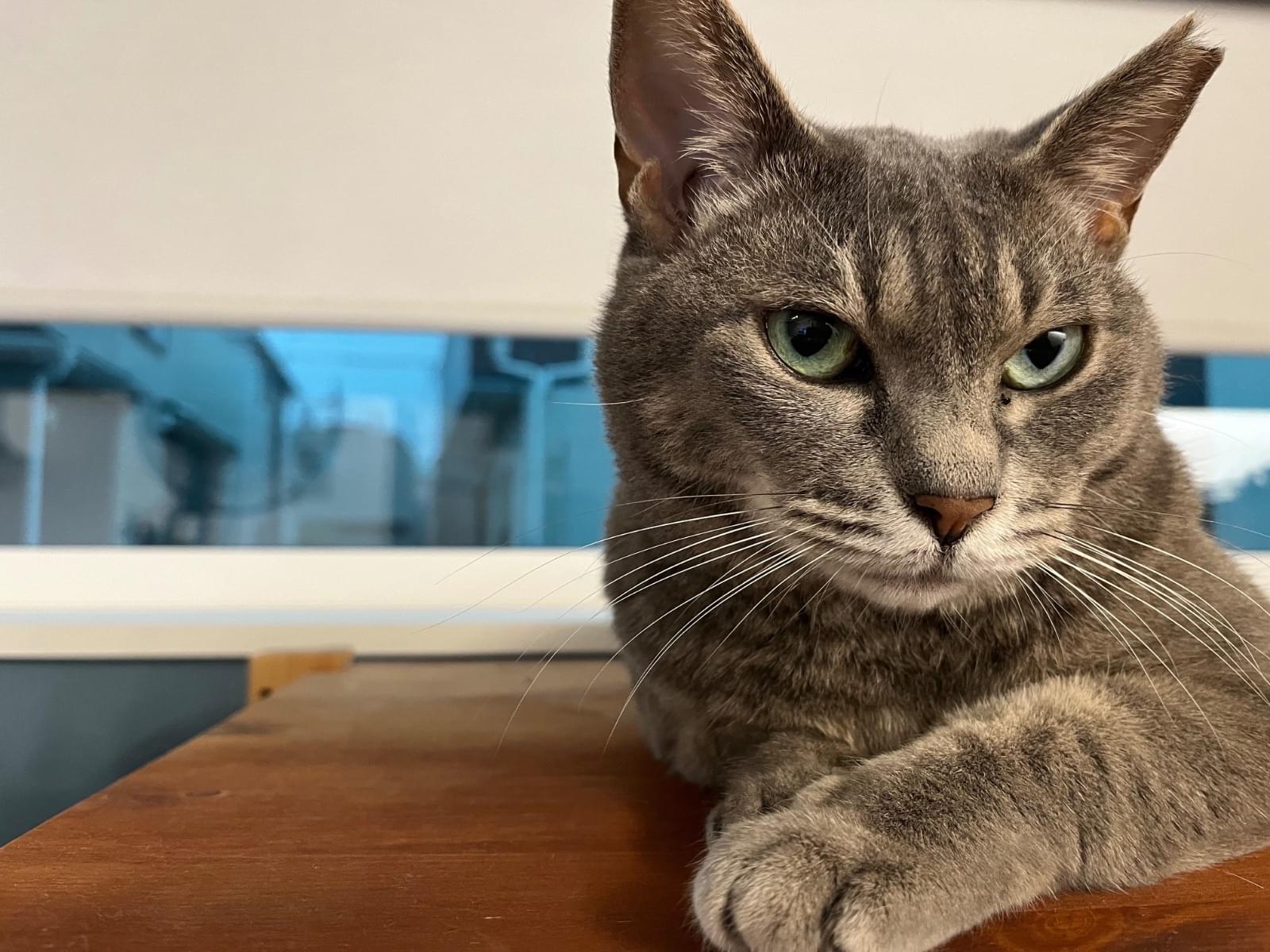 元野良猫で、保護猫として7年前譲渡していただきました。臆病な性格ですが、外への興味はありました。