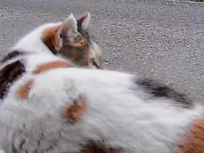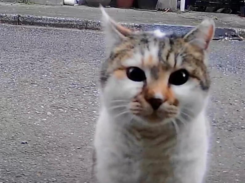 せめて残された羽だけでもと、三毛猫の情報もお待ちしています(別日に監視カメラに映っていた写真3枚)。