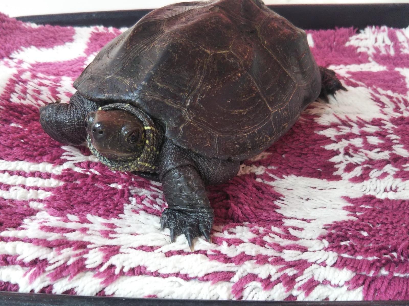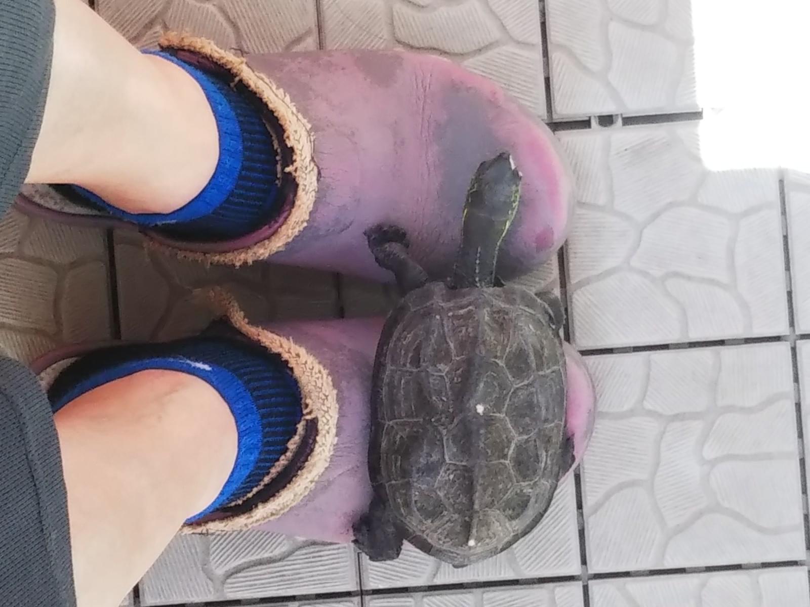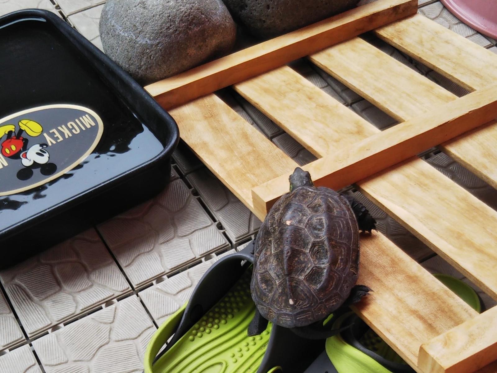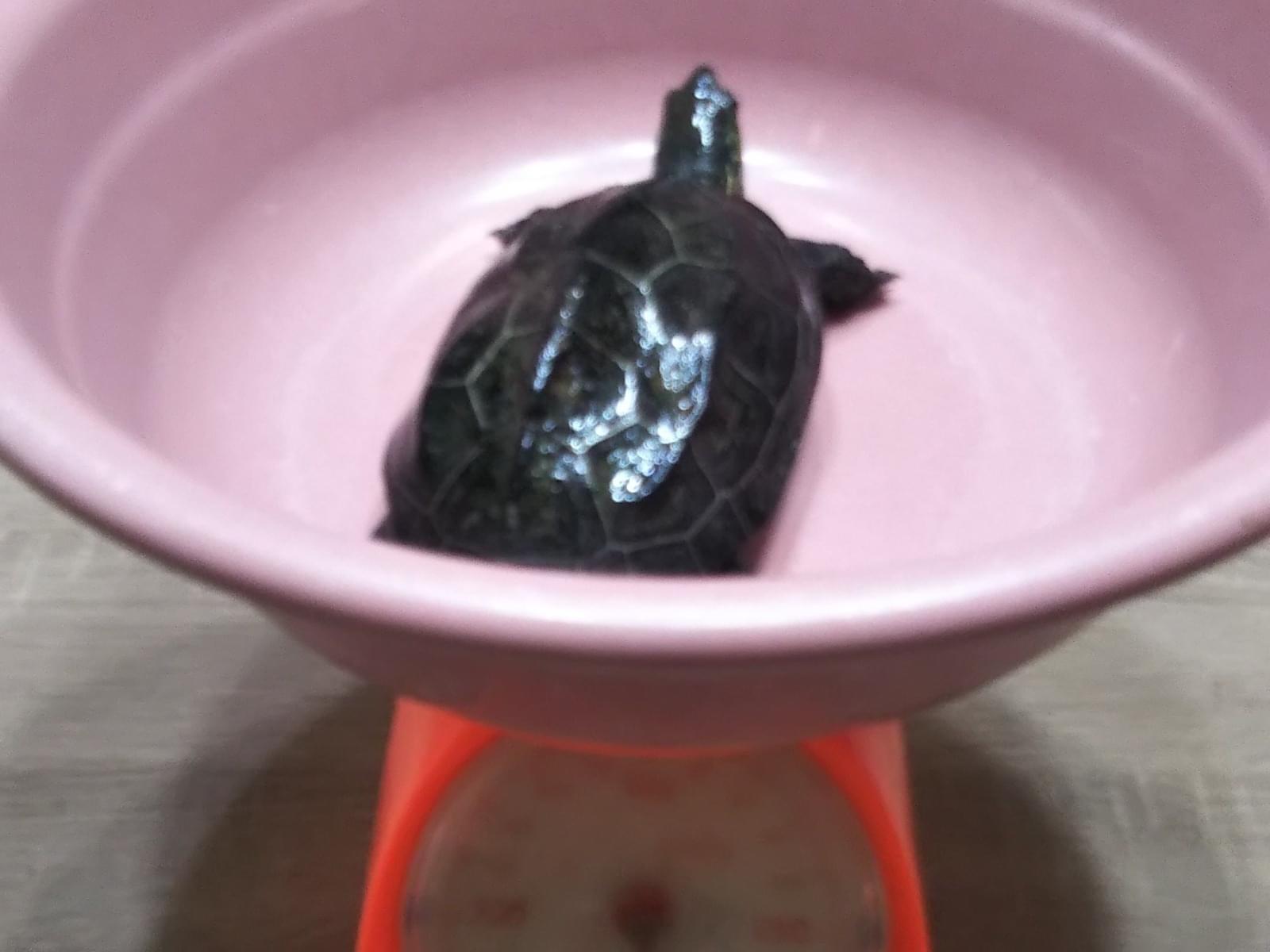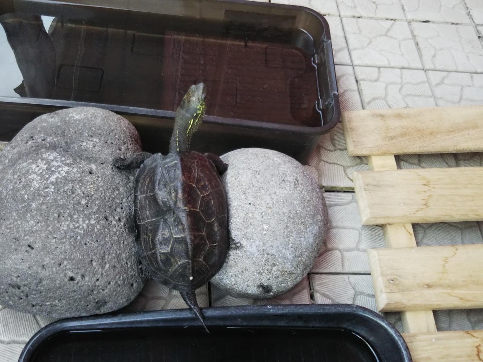 クサガメです。手の平に乗る20cm位、300gで臆病ながら人懐こいです