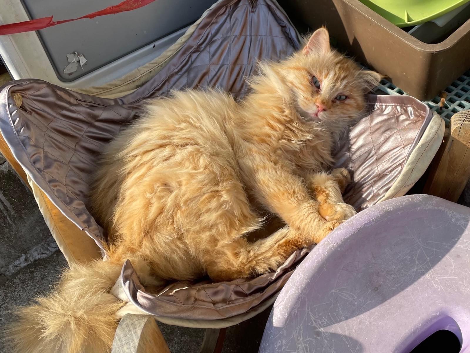 2025年3月に入る頃から、実家の玄関先でよく見かけます。人懐っこく、エサより人との触れ合いを求めているようです。落ち着いていて、かなりマイペースな印象です。おそらくオスかと思われます。