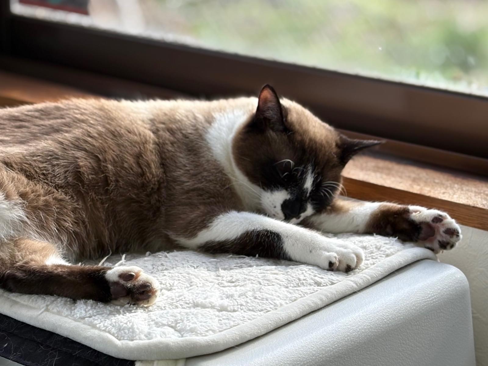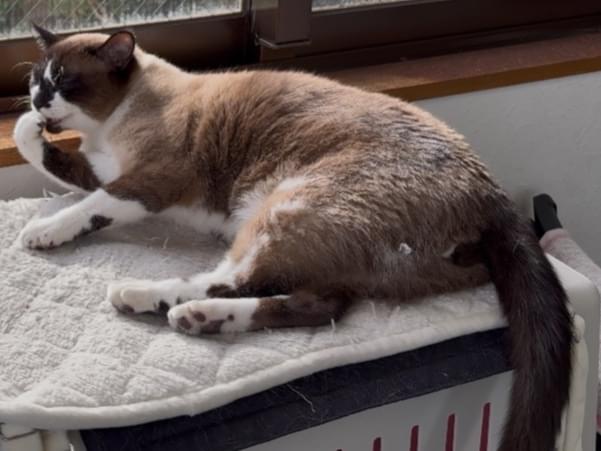 のんびりとした性格で、動きはすばやくありません。生まれつき鳴き声があまりでません。てんかんを患っており、投薬治療をしています。