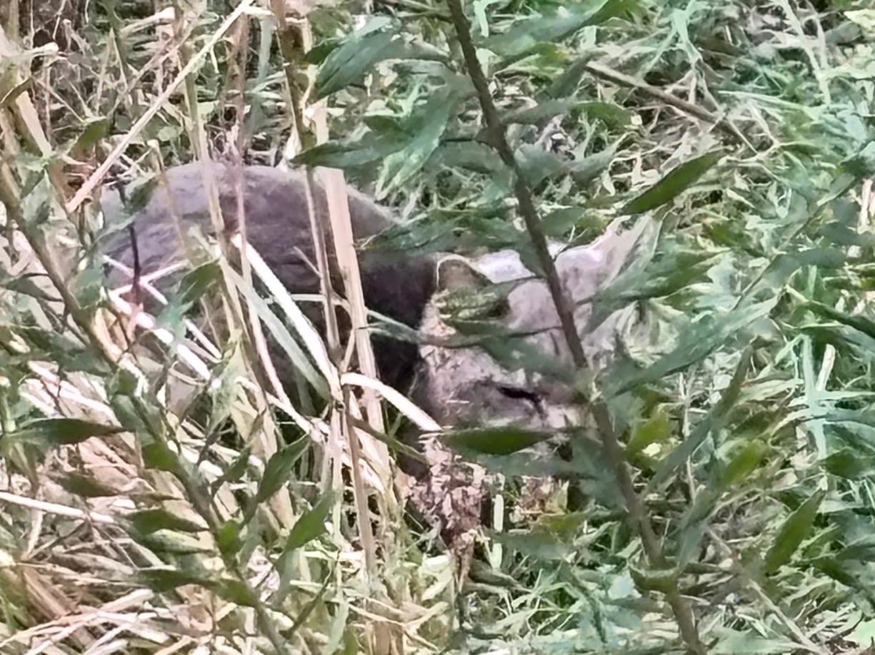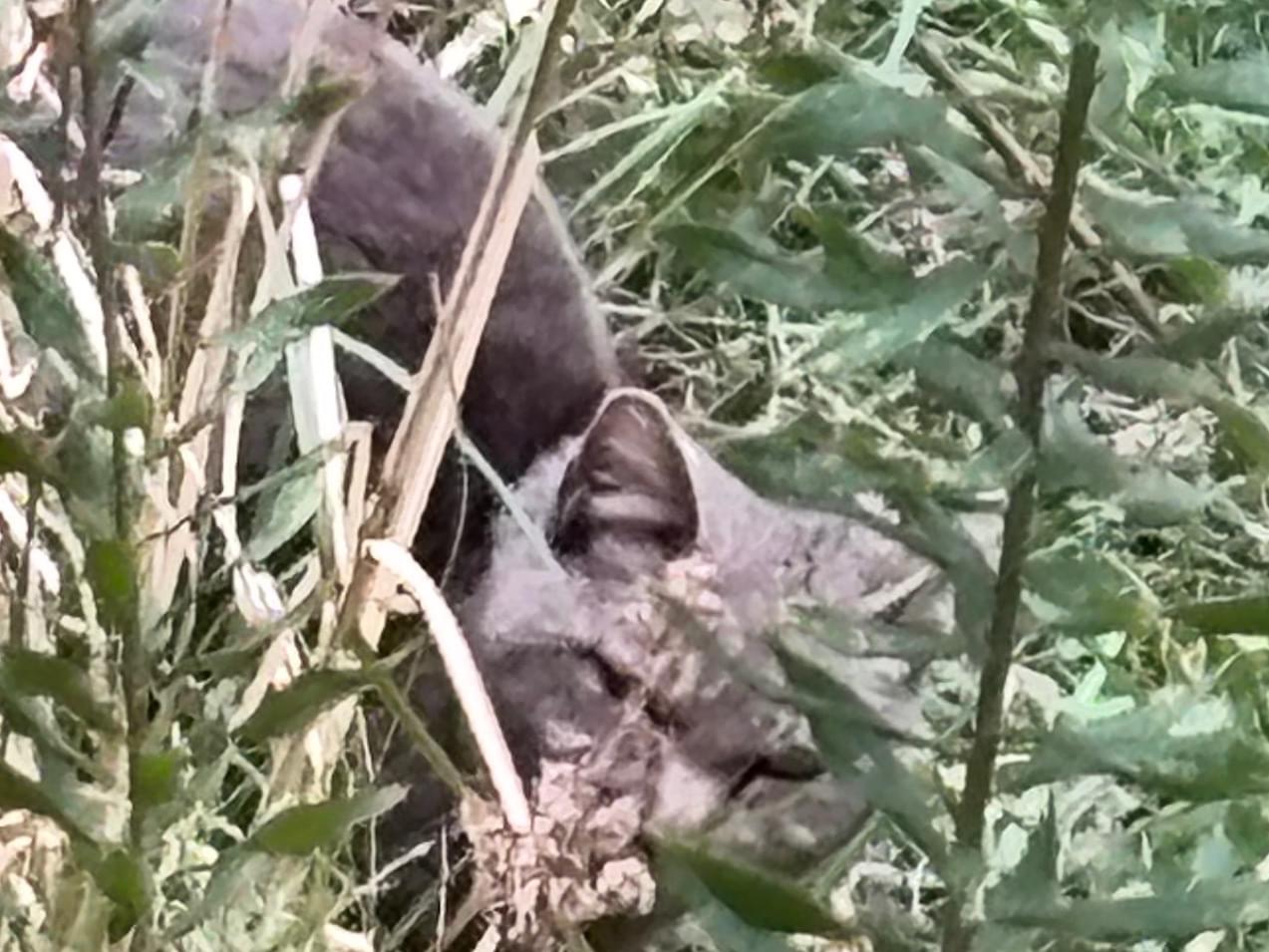 空き地の草むらで座っていました。たまに地域猫らしき猫がきていますが、普段見かけない子でしたので探されていないでしょうか?