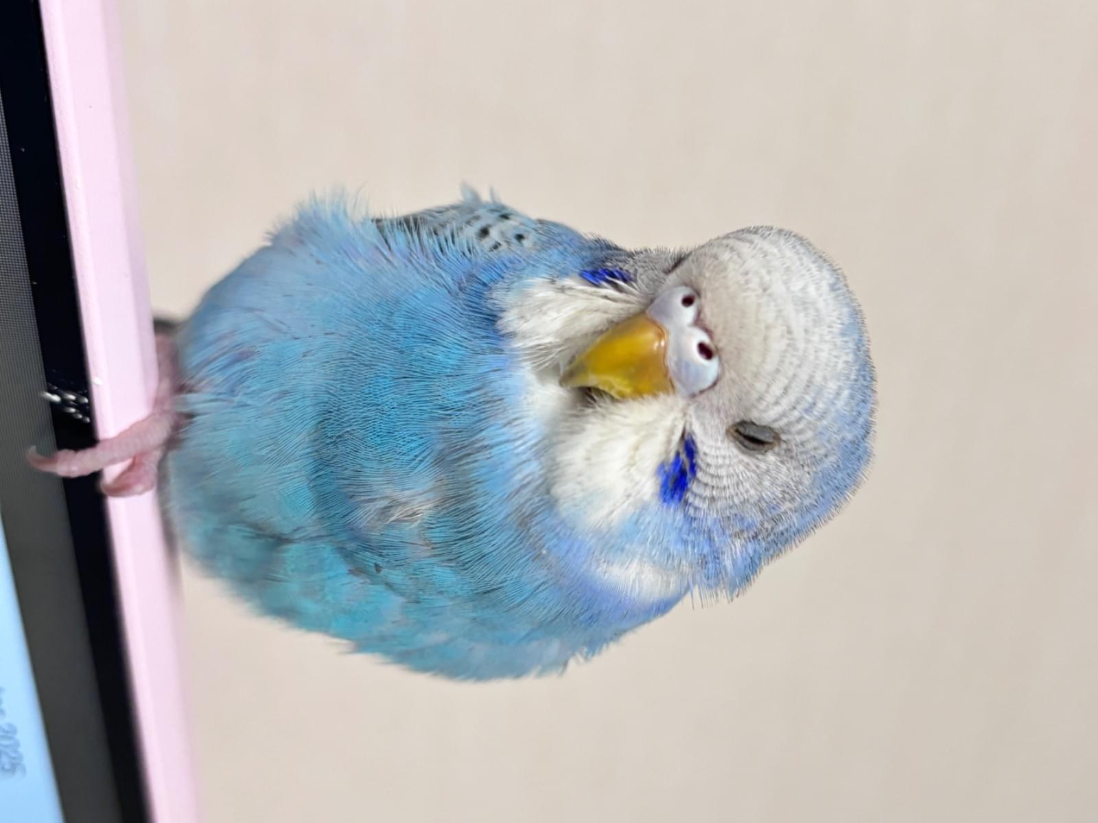 両方のほっぺたがブルーで尾が白です。