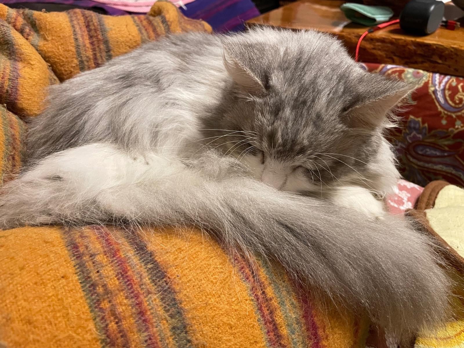 薄いグレーのふわふわの長毛種メス猫を探しています