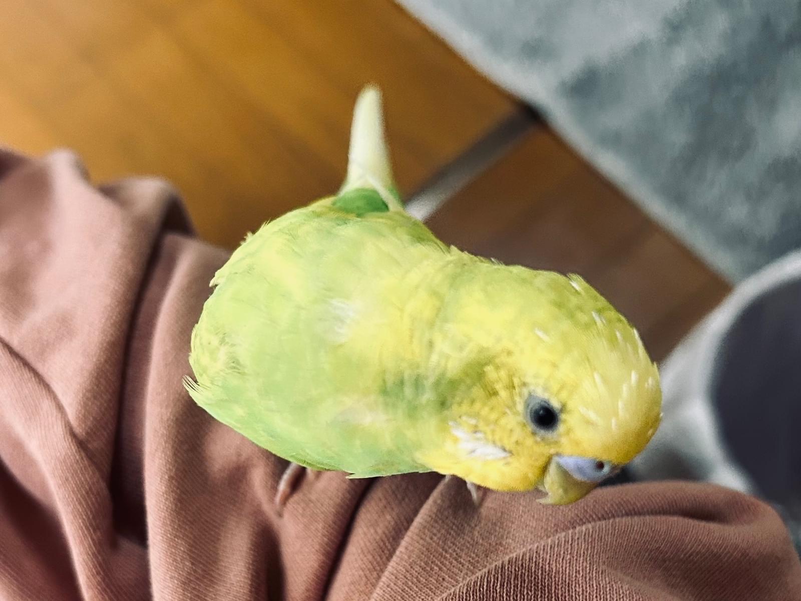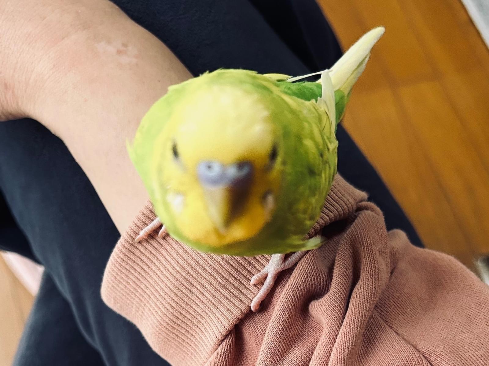 肩に乗り、顔を強く噛み引っ張る癖があります。