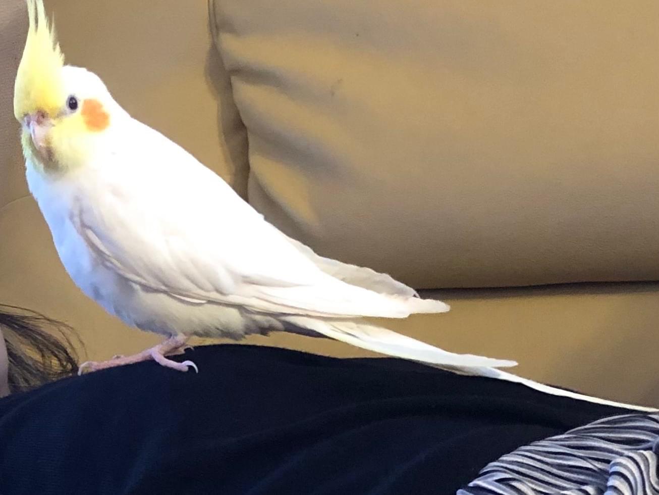 種類はオカメインコのルチノーで身体が白く顔が黄色でほっぺがオレンジ色です。1回ケージの中で暴れたことがあり、身体に血痕が少しだけ付いてるかもしれません