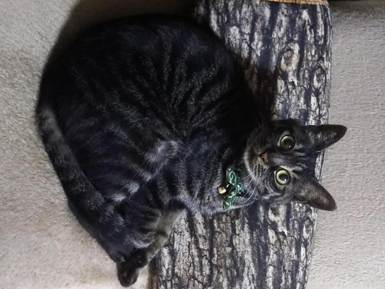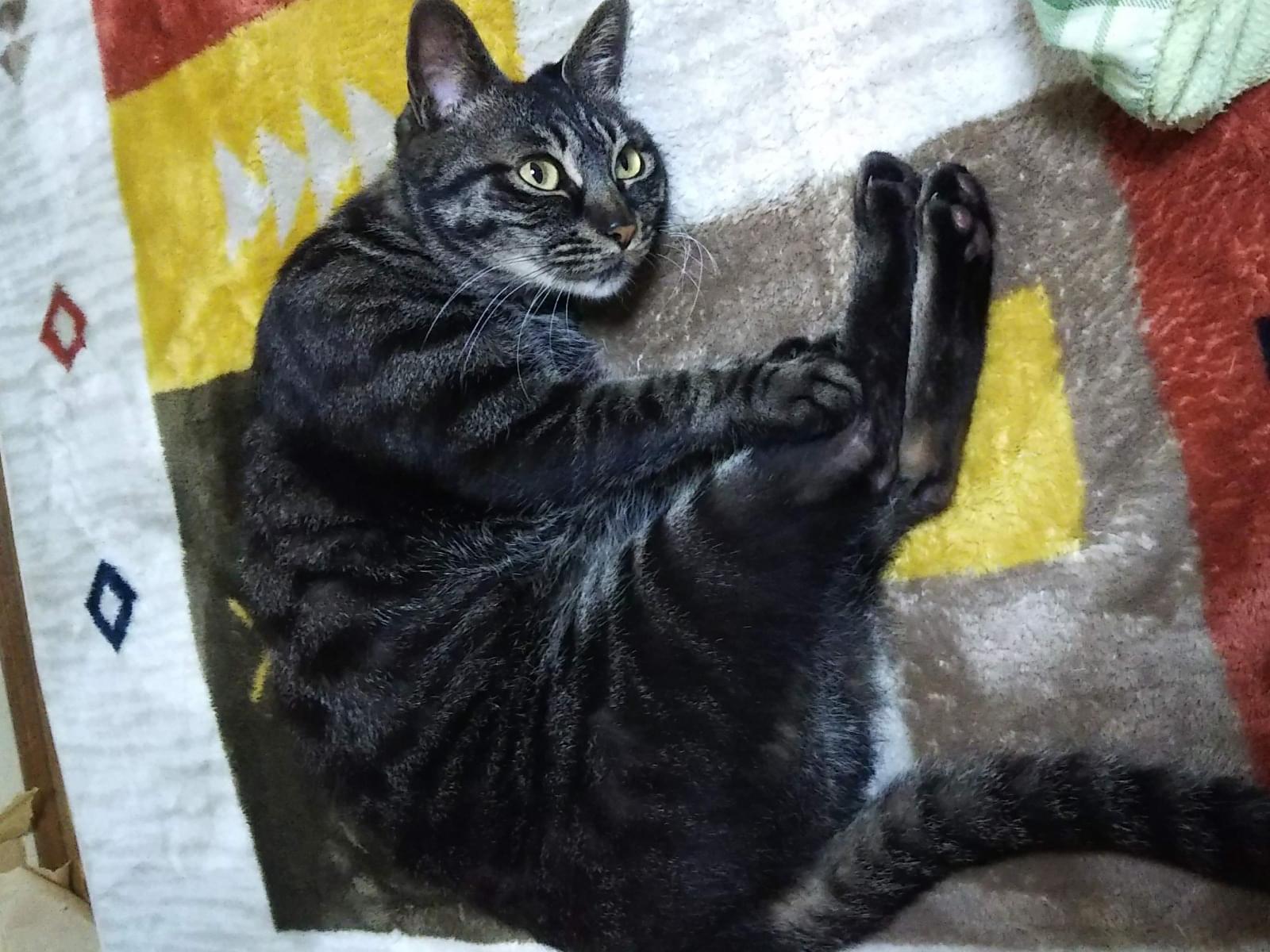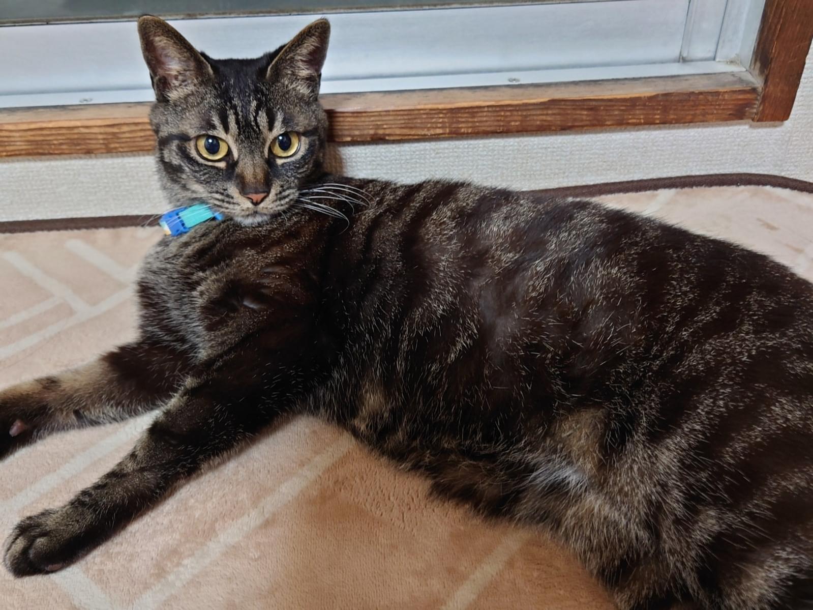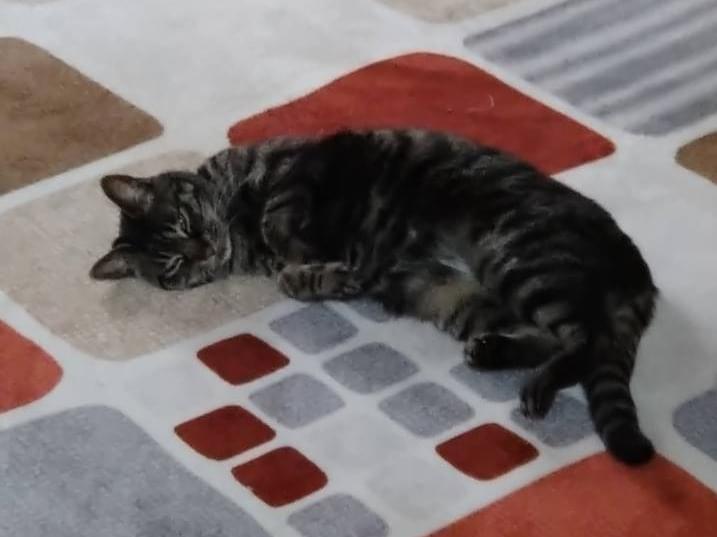 キジトラ猫(頭のてっぺんと背中が黒っぽい)♂です