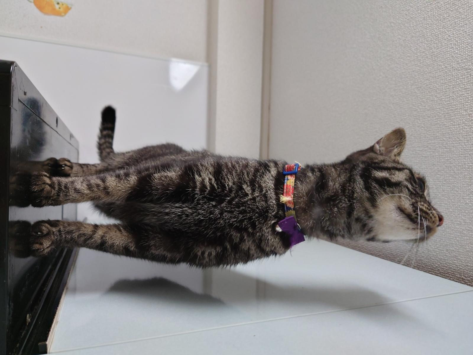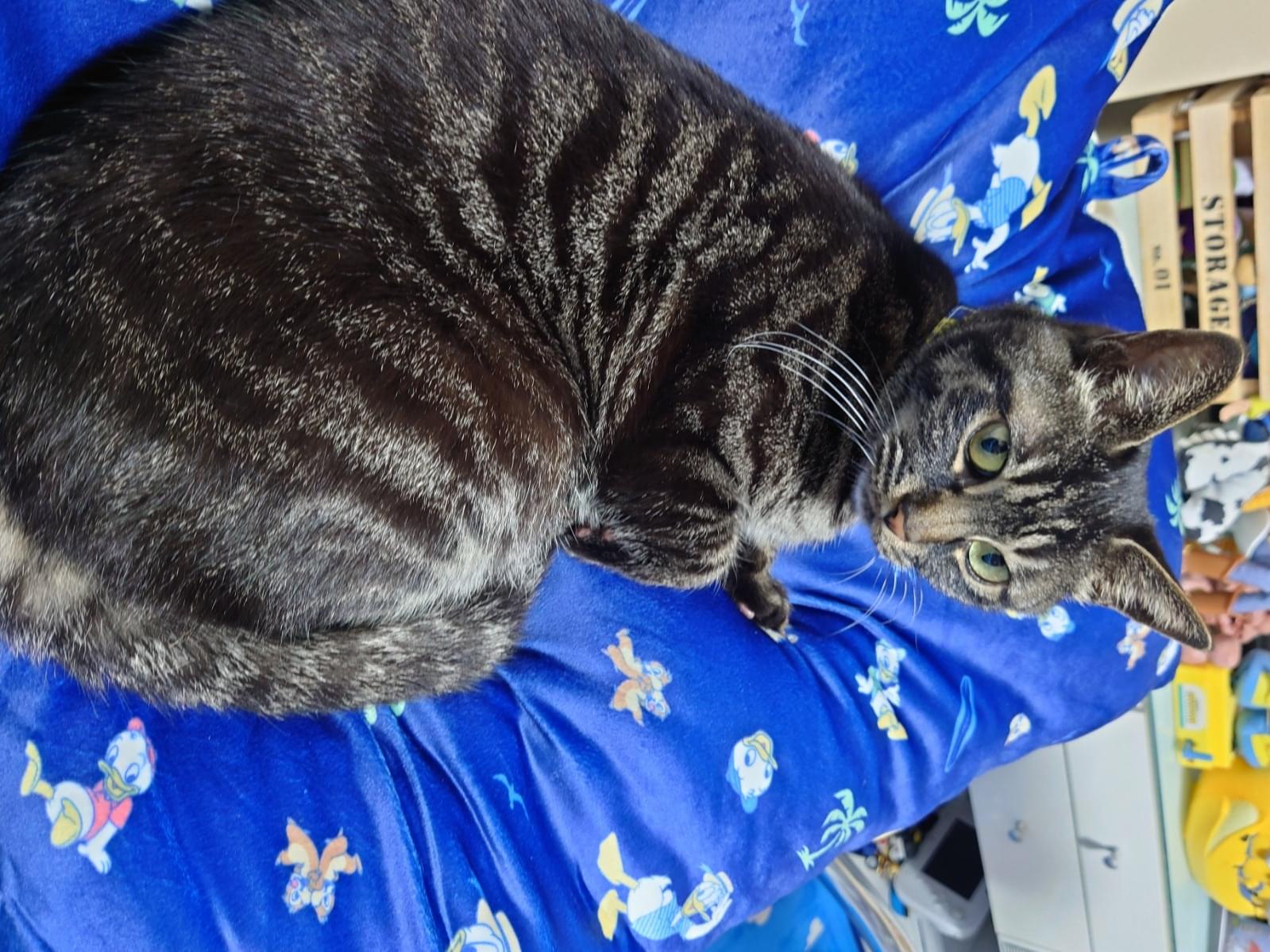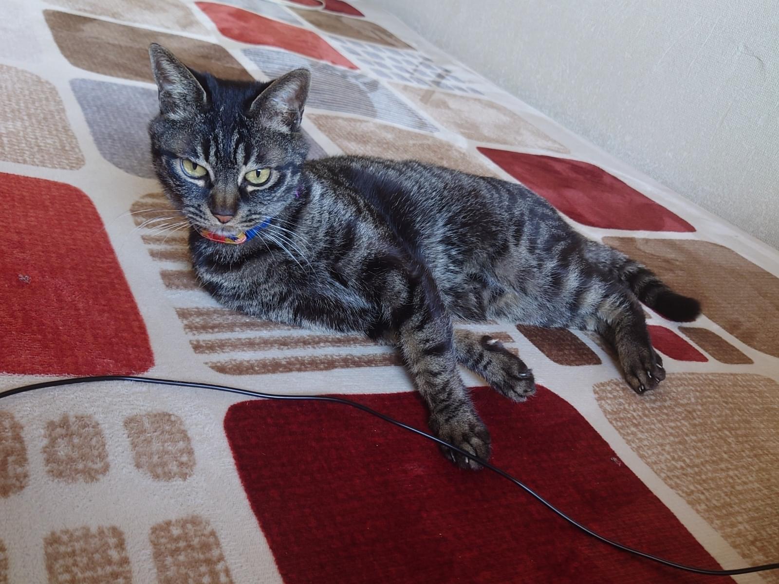 キジトラ猫(頭のてっぺんと背中が黒っぽい)♂です