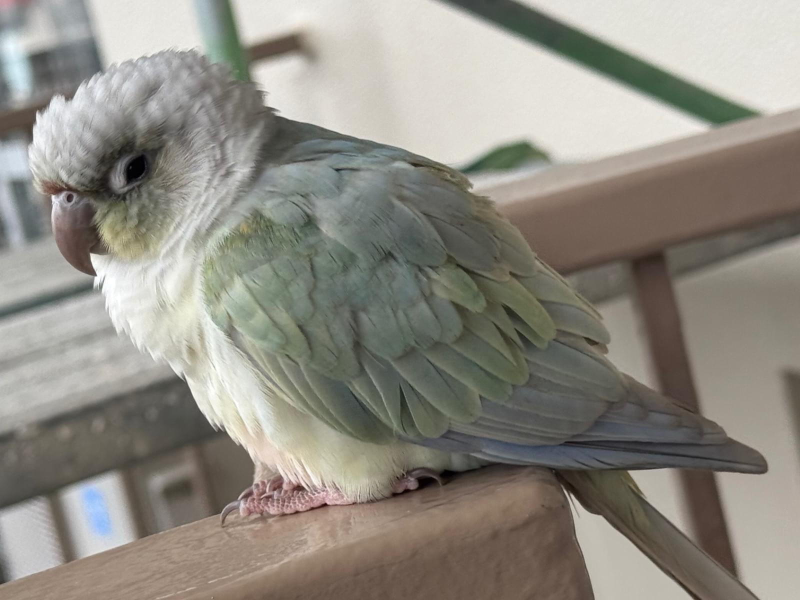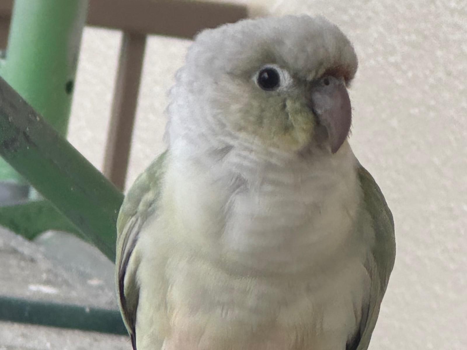 黄緑インコ見かけました🦜黄色タグ付き
