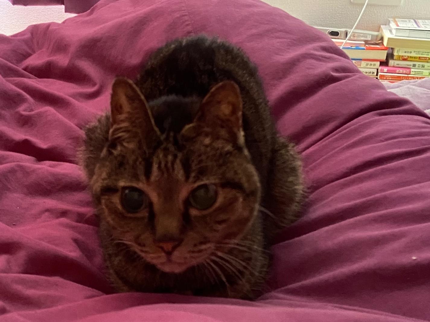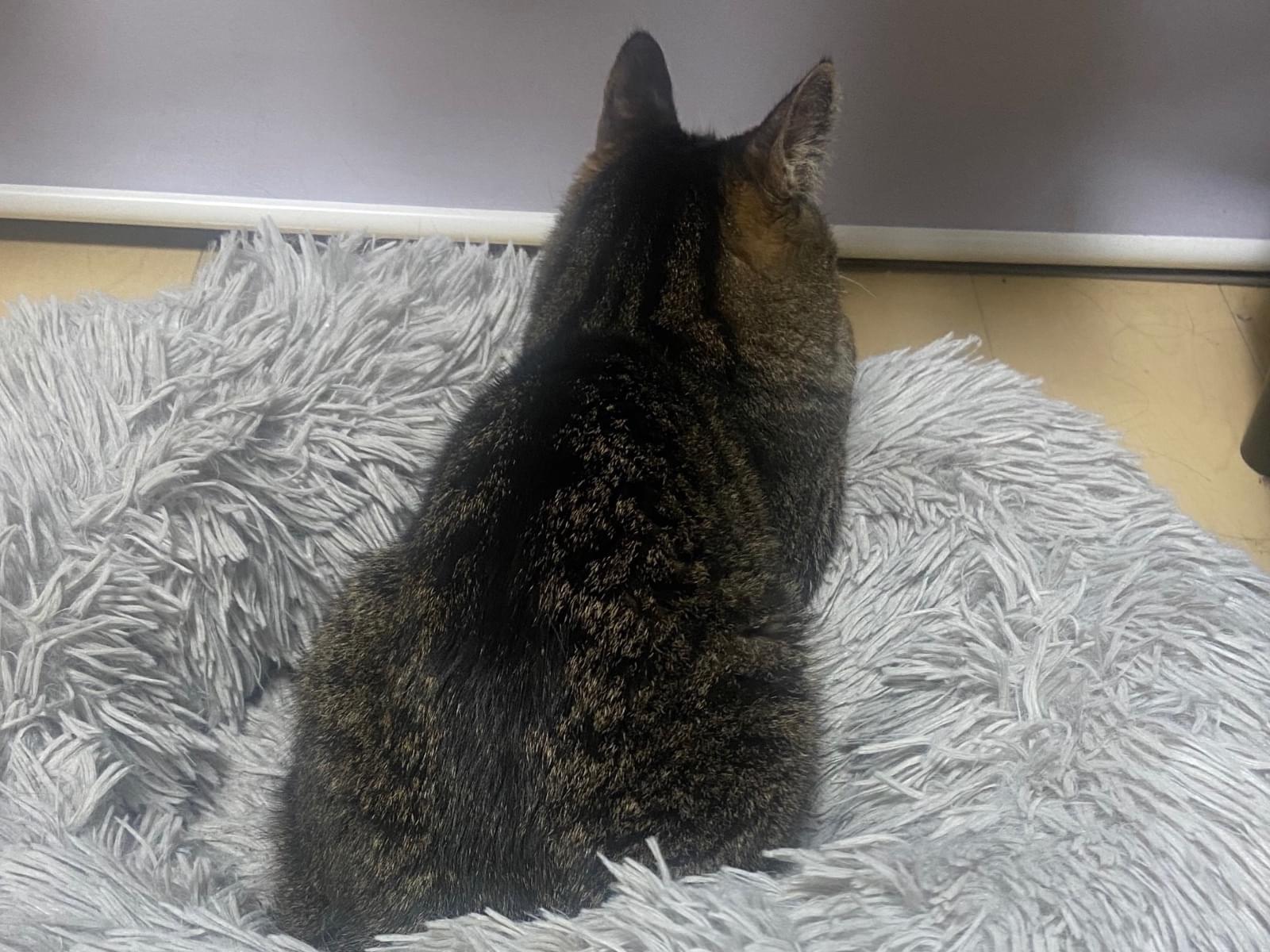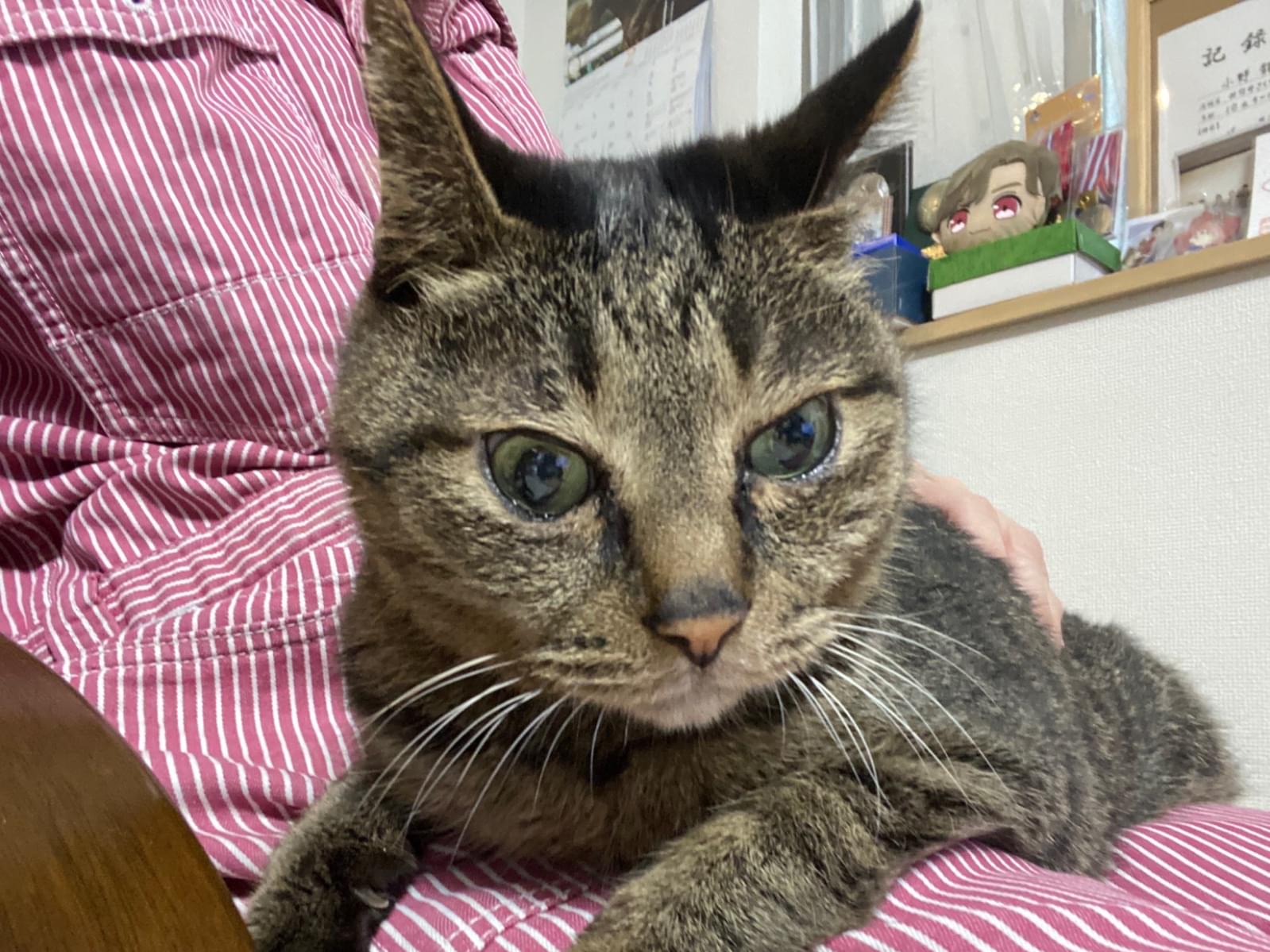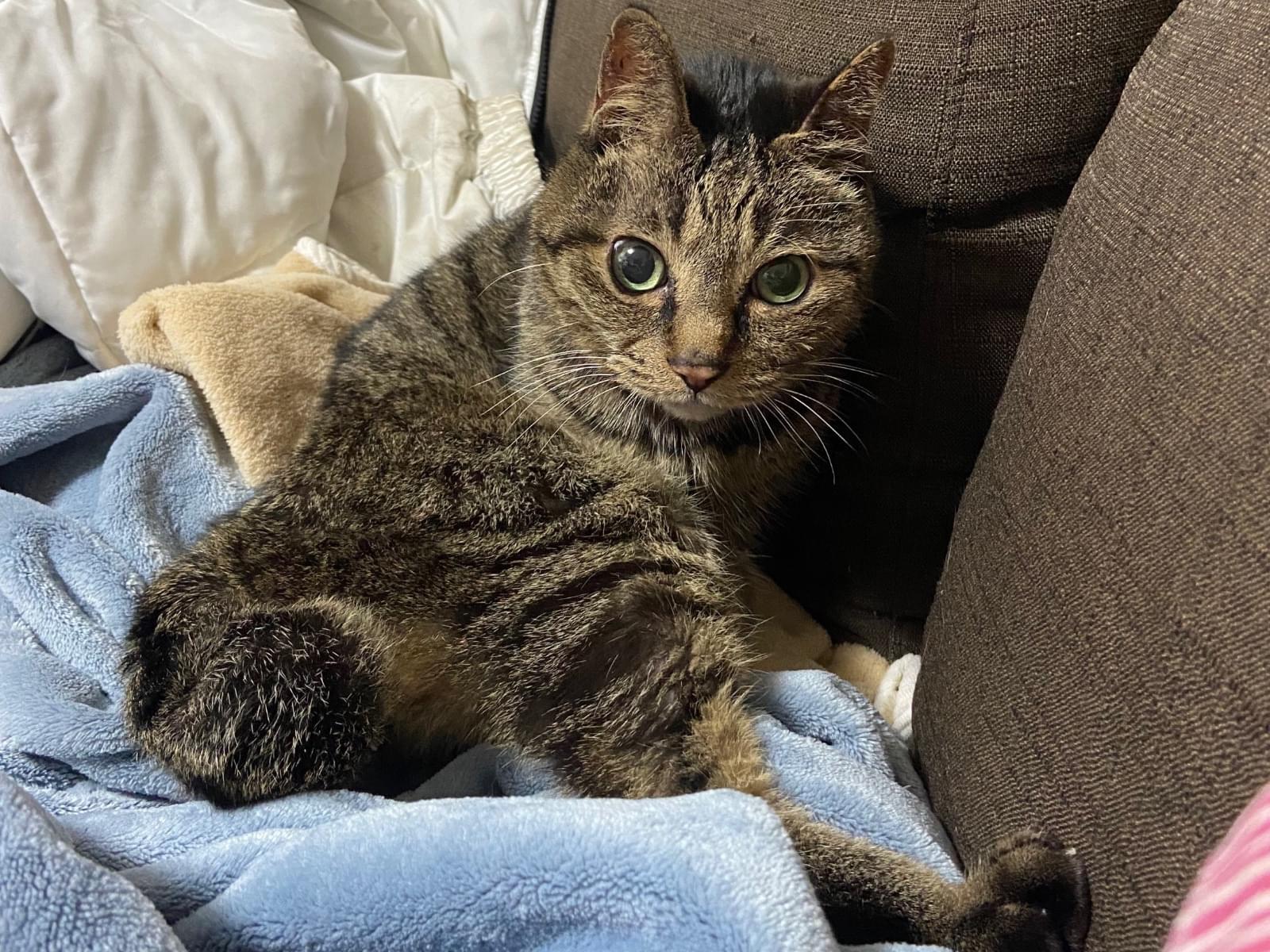 雑種のキジトラで尻尾がカギしっぽになっています。