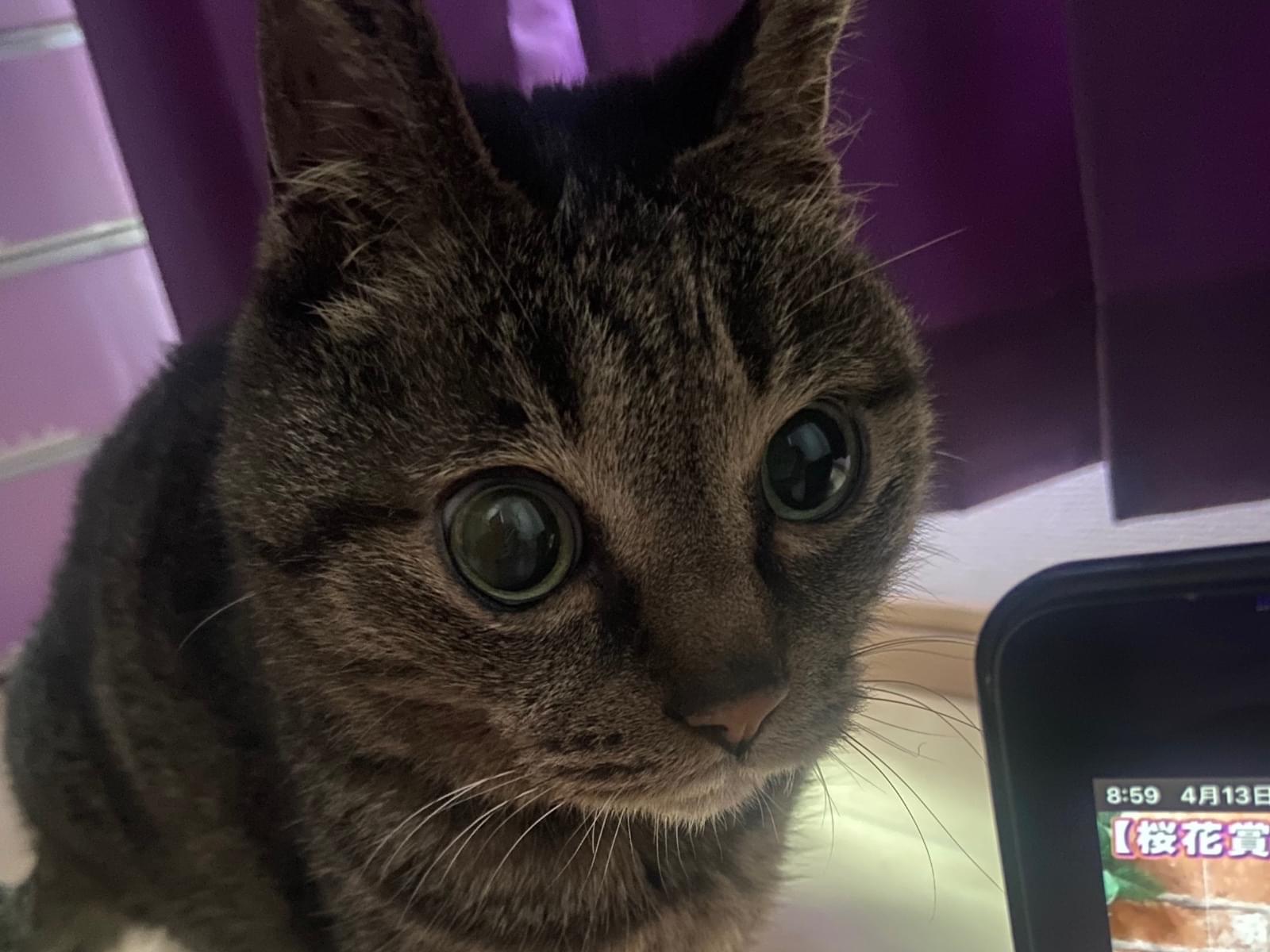 耳の間が狭く、白目が少し見えていて左目があまり見えていません。