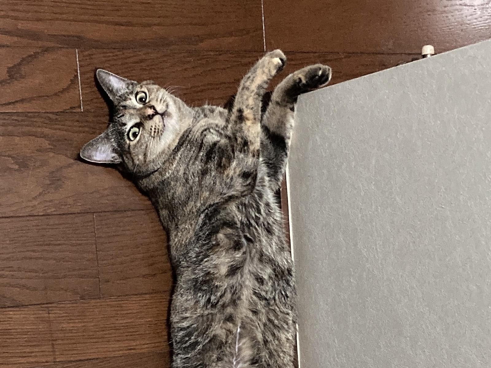 尻尾が短く(ボブテイル)手足が細い、サビ模様で手足・頭にトラ模様がある。
