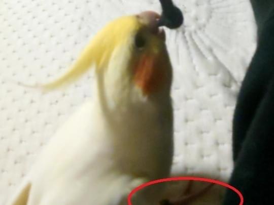 右足に足輪をつけたオカメインコ(ルチノー)を探しています