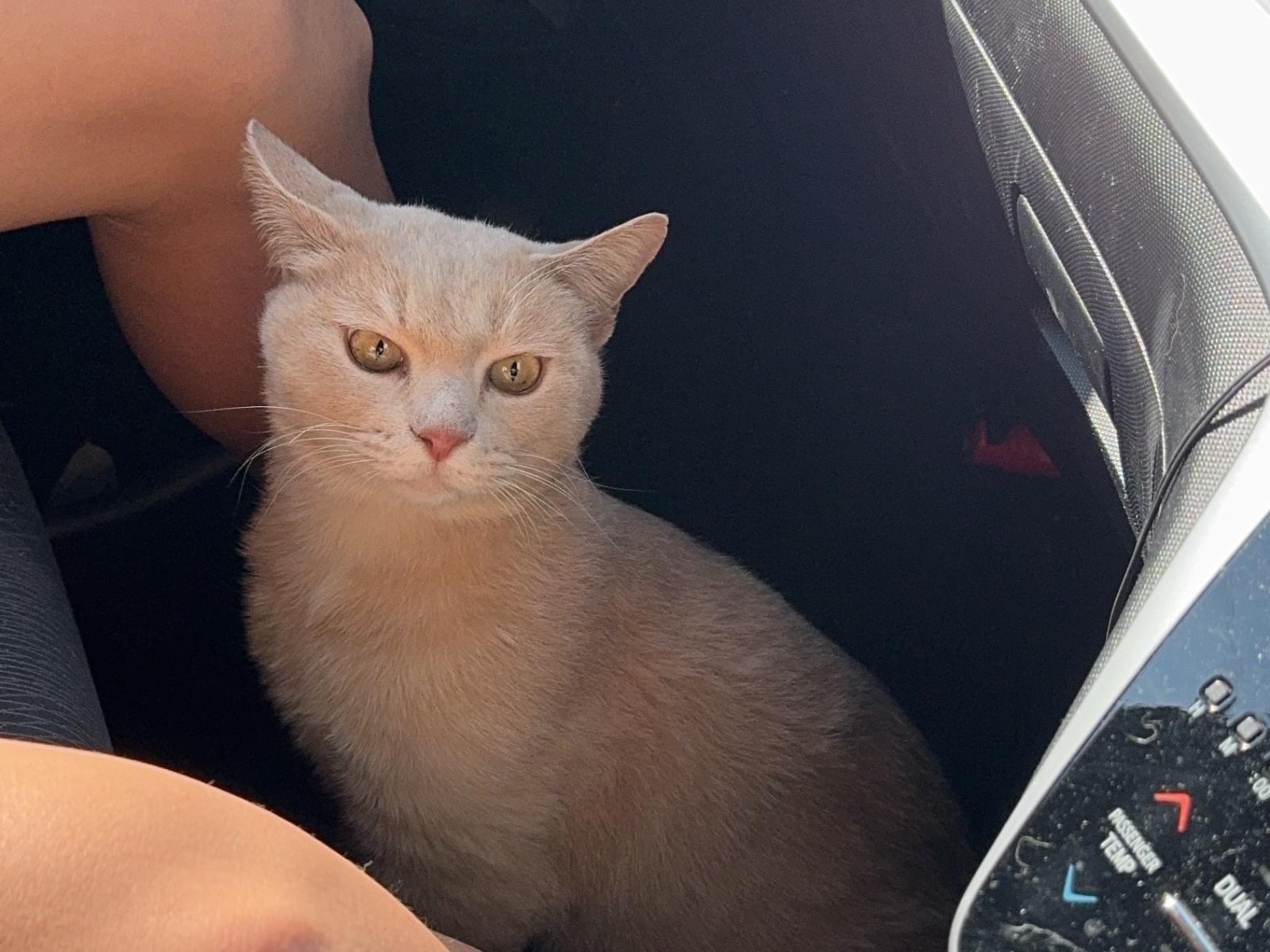 ミルクティーみたいなベージュ色。オス猫、5.5キロ。