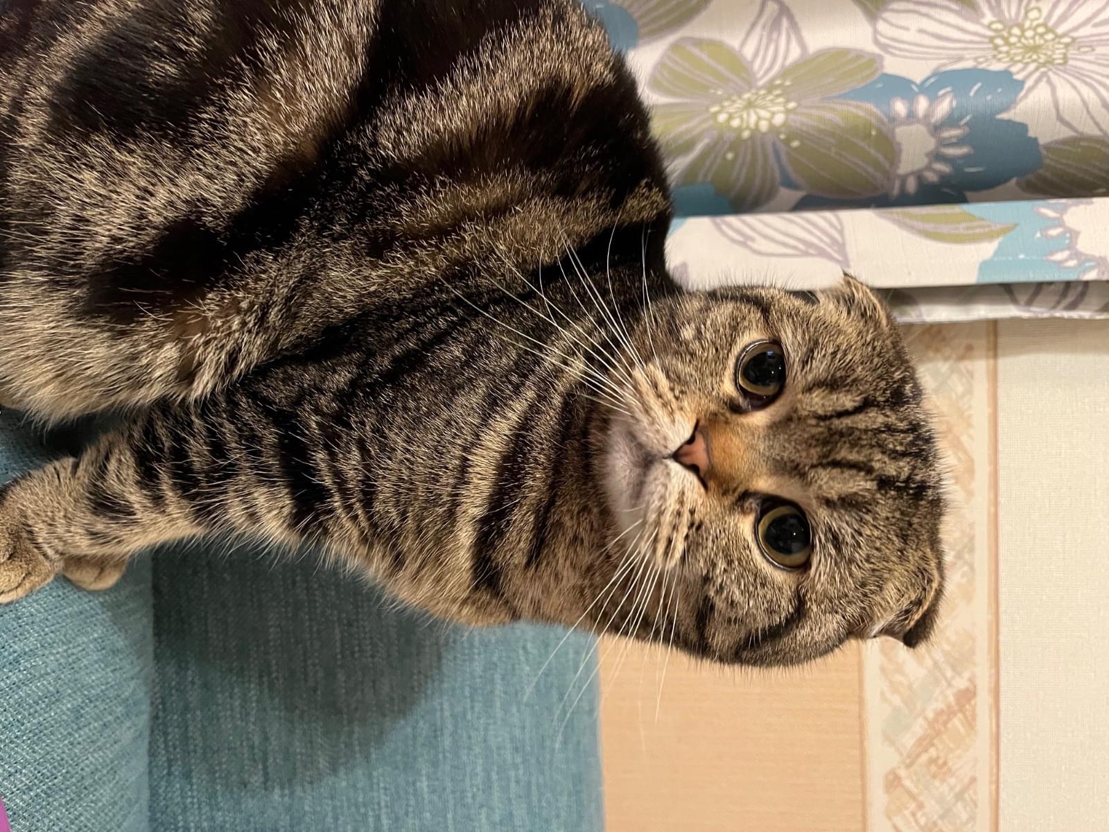 茶色っぽいアメショ柄のムクムクの猫ちゃん