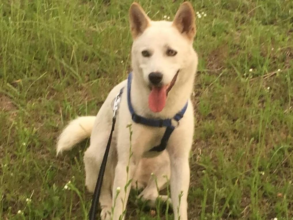 優しい気性で、どんなに吠えられても小型犬には尻尾を振っています。