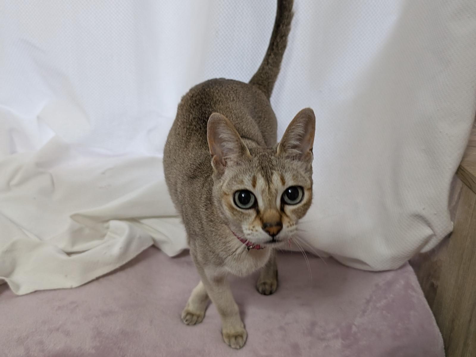 桜色の首輪をした、子猫の様に小さなシンガプーラです