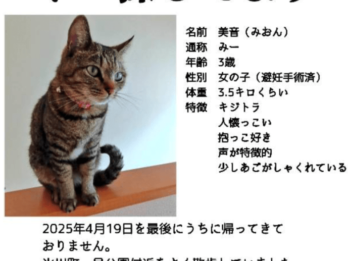 夜には帰宅していたのですが、4/19から戻りません。