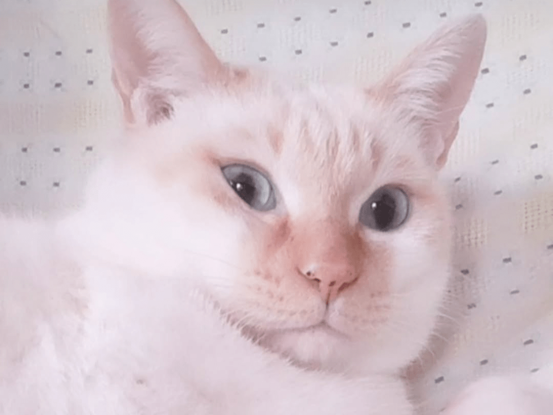 青い目の毛に白とクリームが混ざったような色合いの猫を探しています。