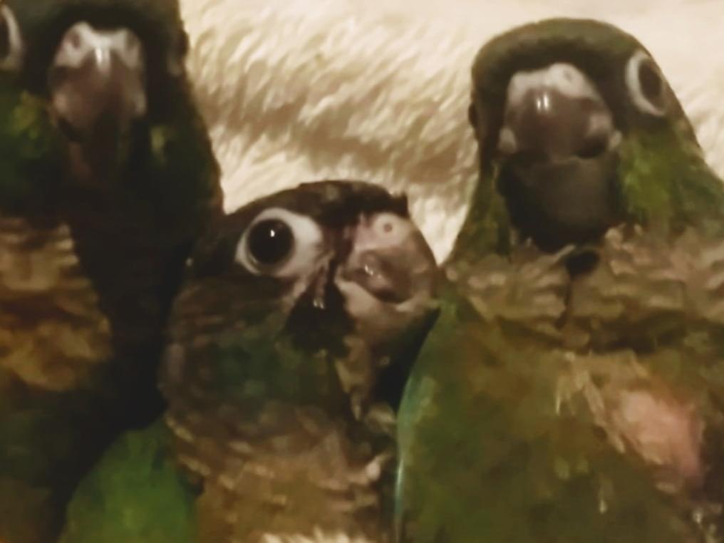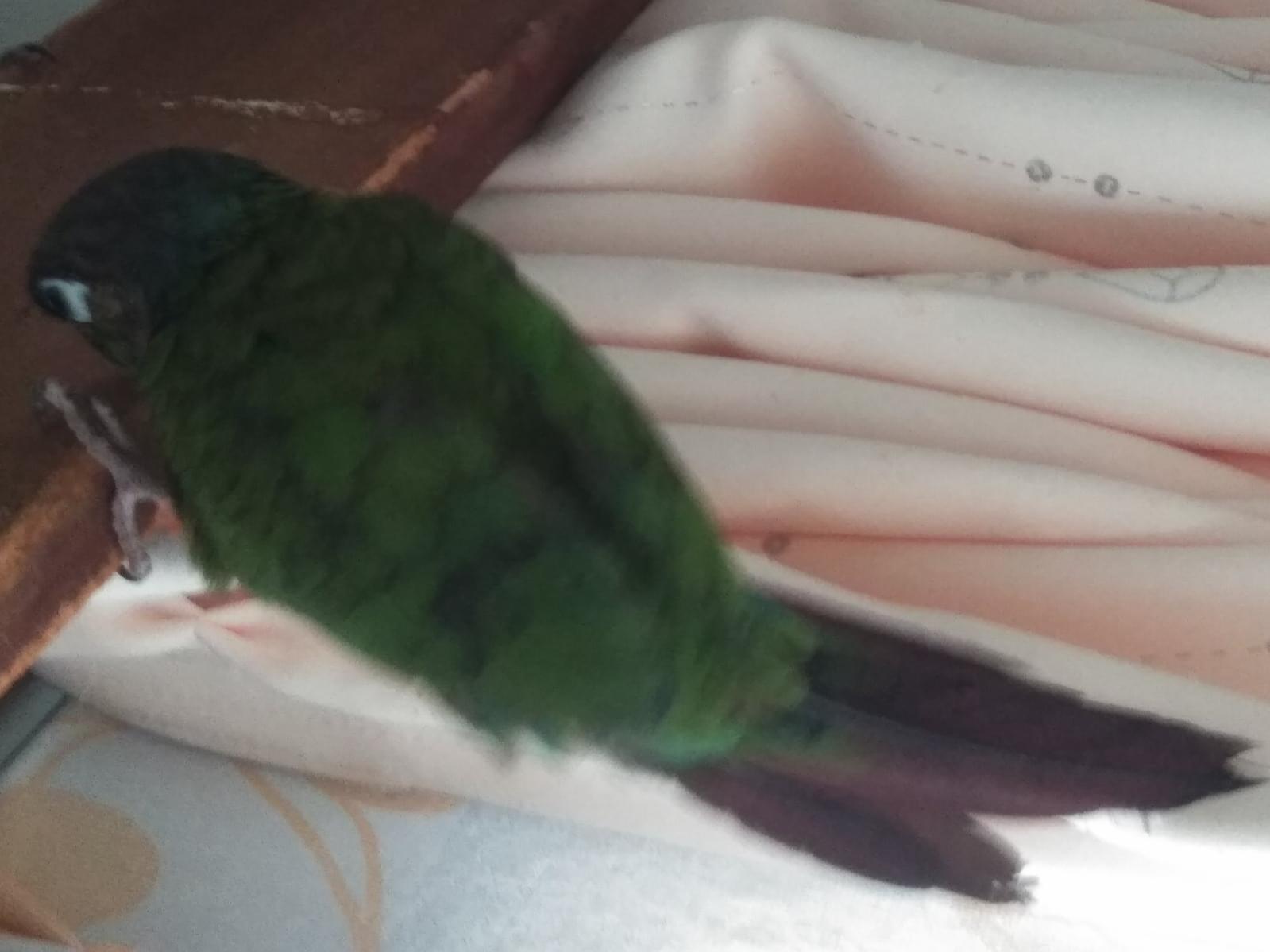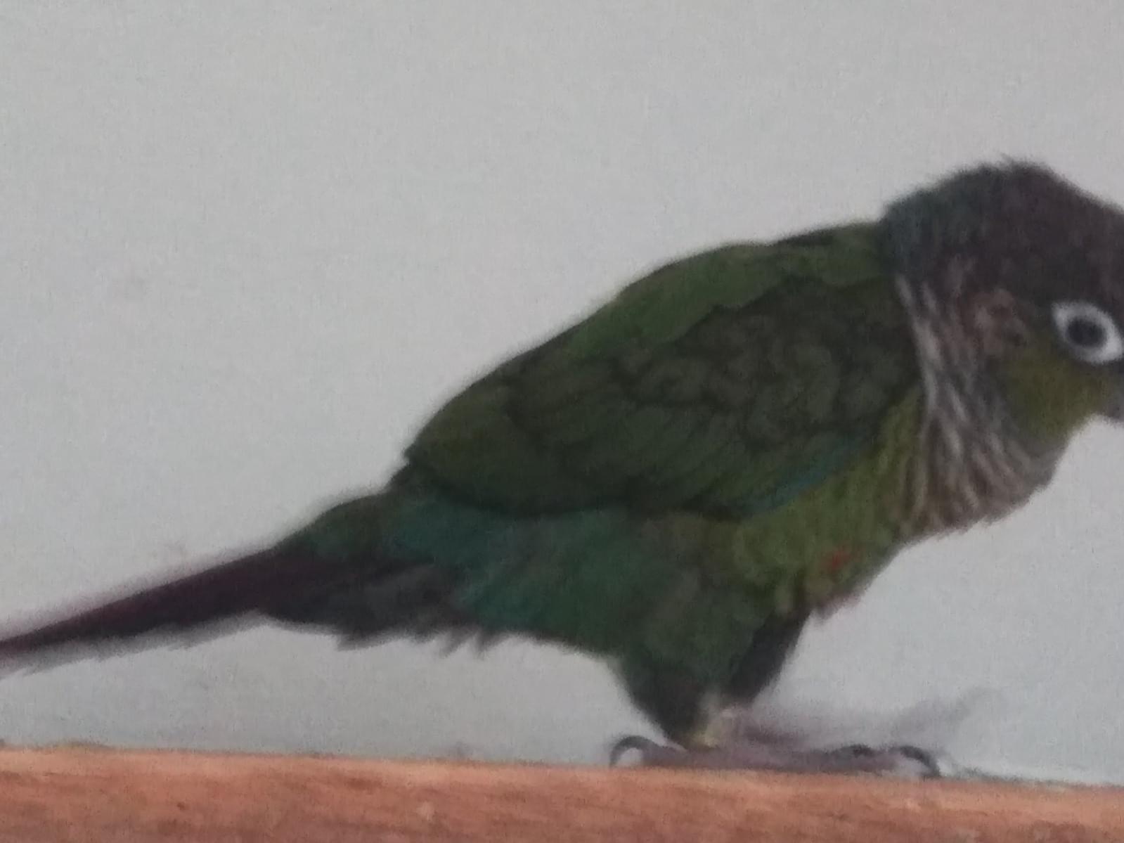 目の回りが白く、身体全体はまだ濃いグリーンがメインです。 尾羽根は濃い赤でお腹と尾羽根はまだきれいに生え揃っていません。 青や黄色が羽根の内側や端に混ざっています。 全長15~17センチくらい。