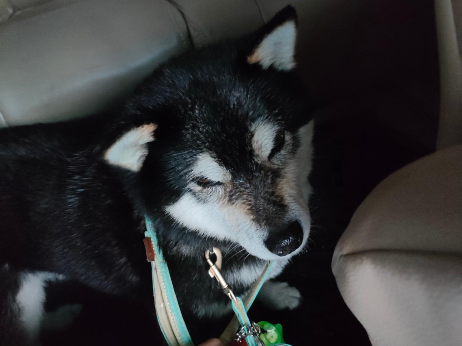赤い首輪の黒い柴犬の女の子