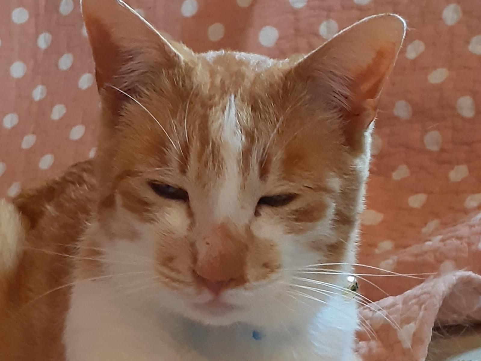 2025年4月19日午前10時頃、長谷堂城跡公園駐車場隣の「あずまや」付近に誰にでも鳴きながら擦り寄ってくる茶色の雄(去勢済)キジトラを見かけた。首輪などもなく、隣家の方によると2~3日前から居るとのことで近所の猫ではないとの事だった。おそらく誰かが捨てたものと思われたが迷子とも考えられるので、午後に餌と水を与え翌日まで様子を見ることにした。翌4月20日午前6時頃再度行ってみるとまだ同じ場所にいた。痩せて衰弱の恐れがあるため保護した。