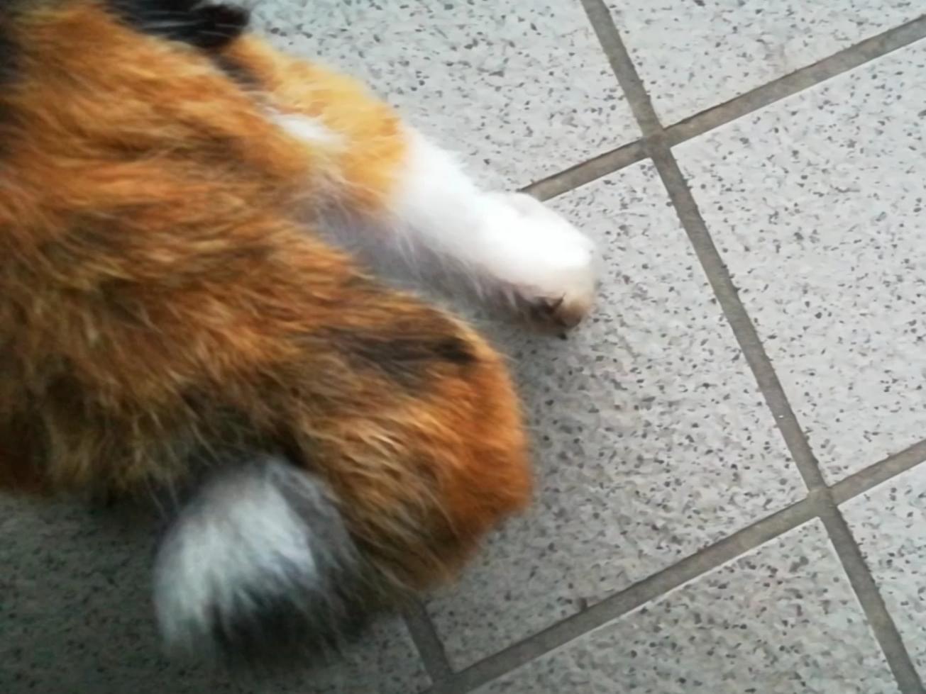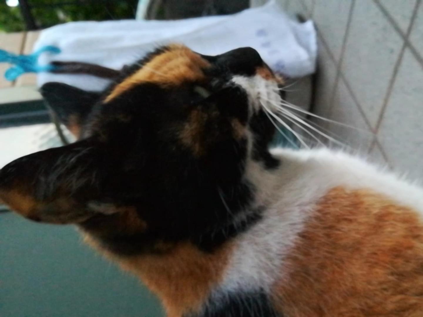 出会ってから2週間、腎臓が悪くて何度か痙攣を起こしていたのですが、14日の朝にも痙攣を起こし、その後様子がおかしくなって(普段は車を怖がるのに、そのときは道路のど真ん中で毛づくろいするなど)こちらも注意してみていました。