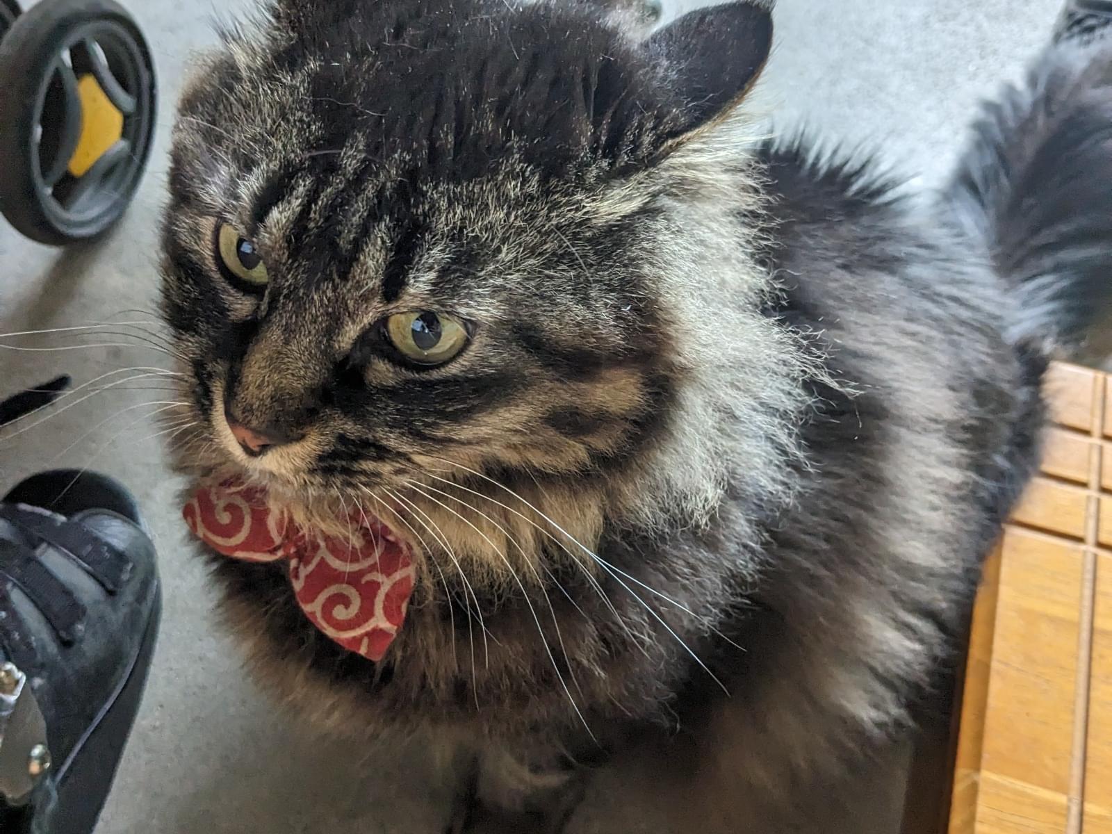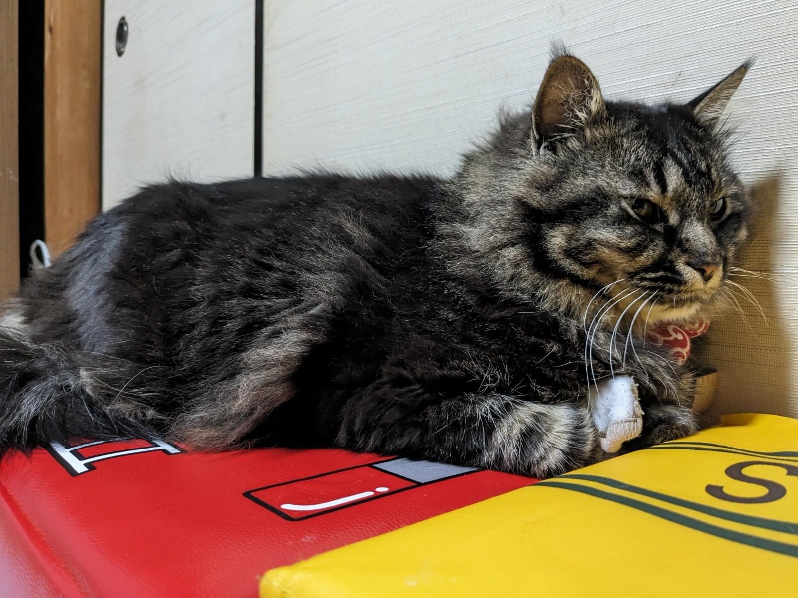 赤い首輪をつけています。鈴がついてます。