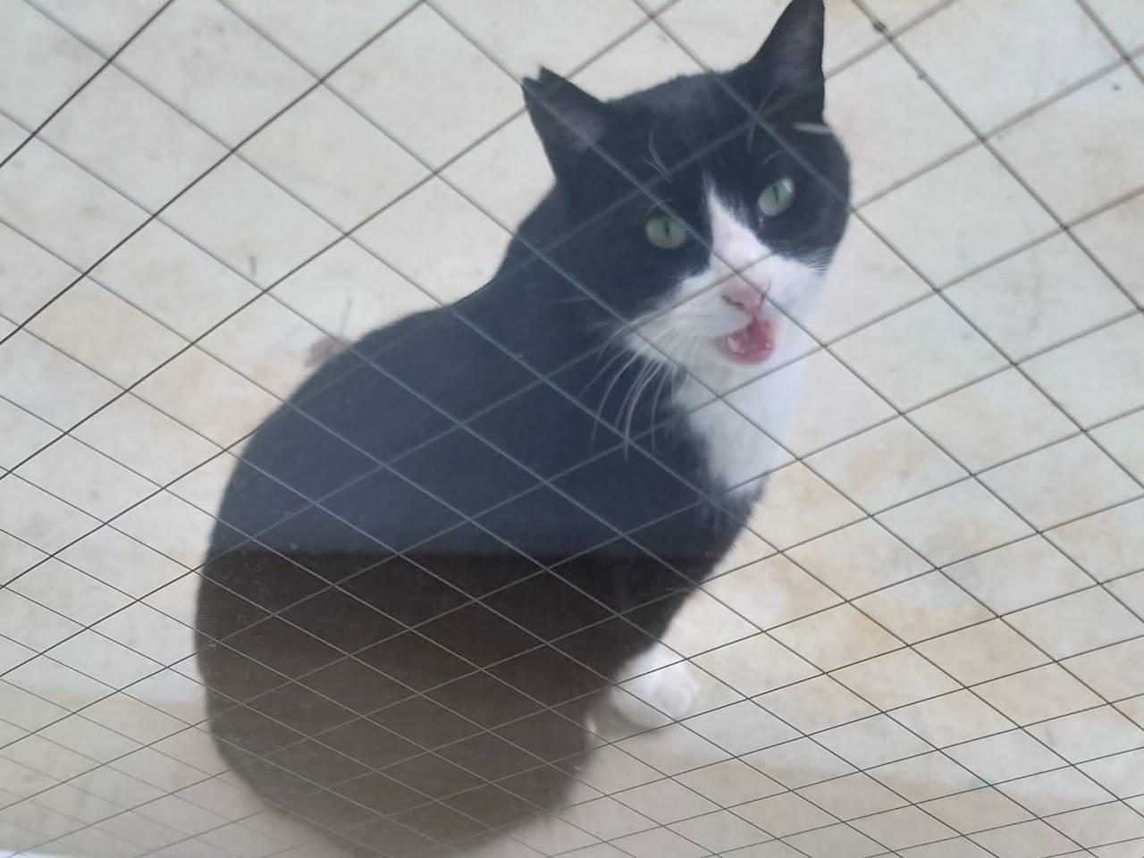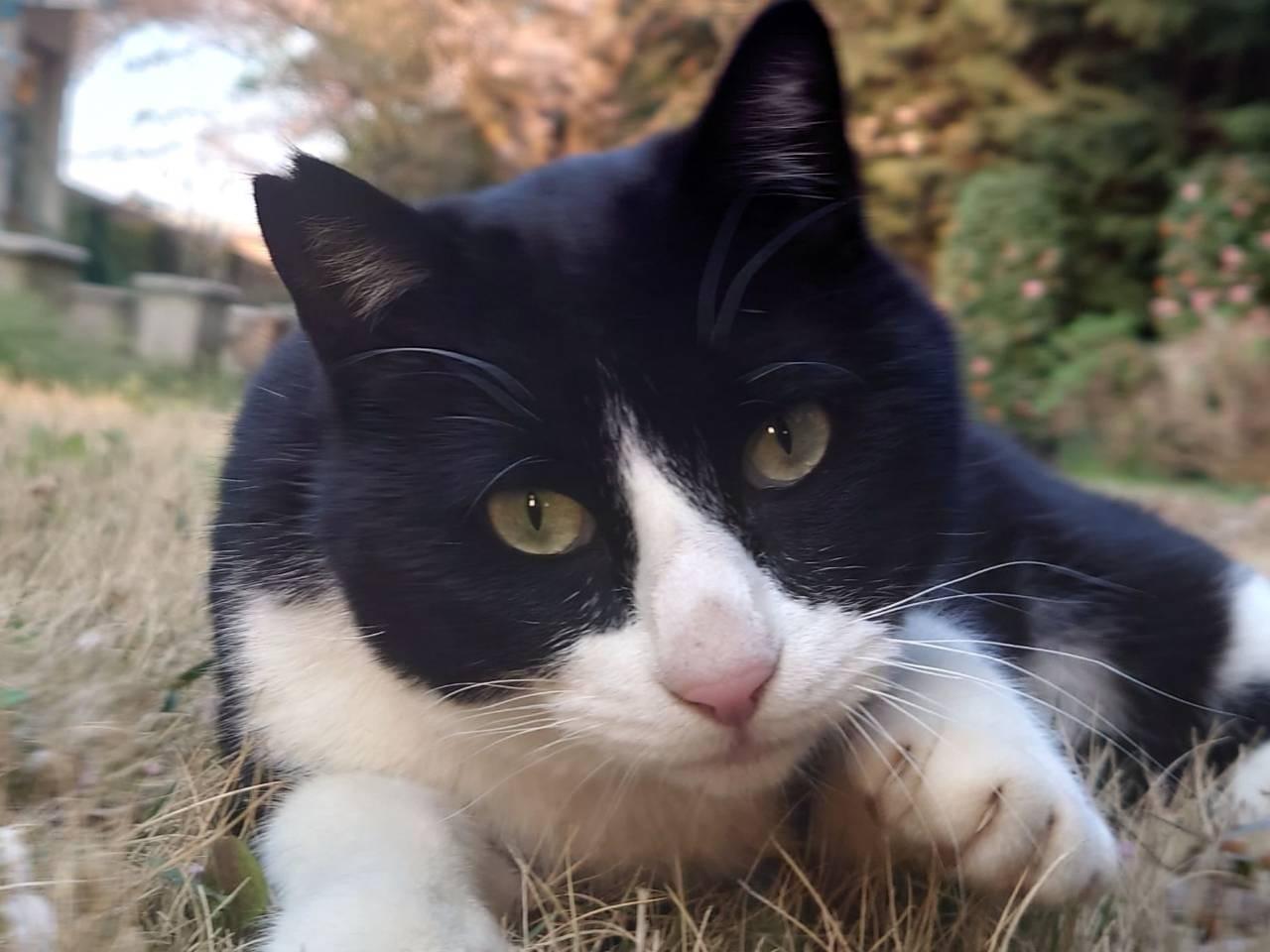 黒白ハチワレ。黒多め。