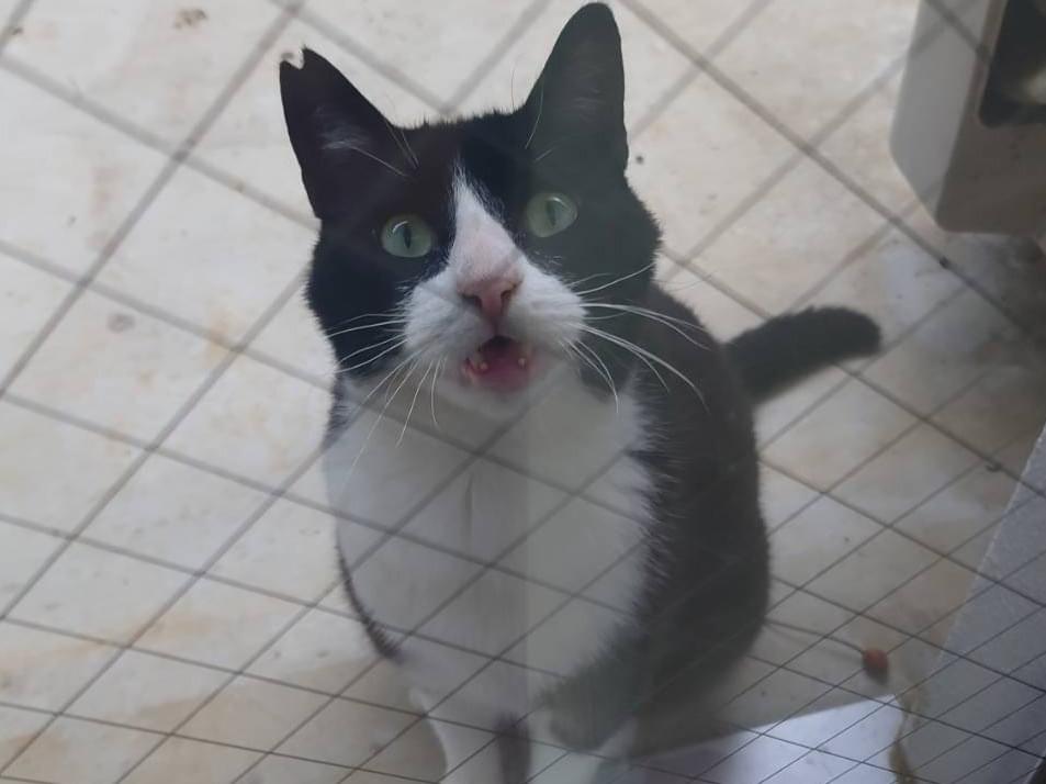 黒白ハチワレ、サクラ耳のオス猫を探しています