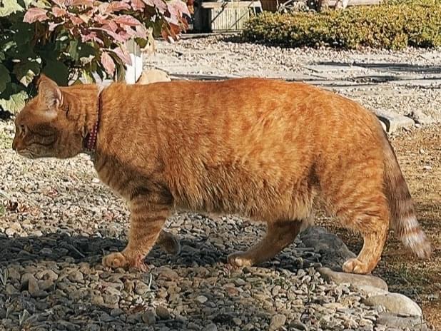 草加市で鈴のついた首輪をした茶トラ猫を見かけました