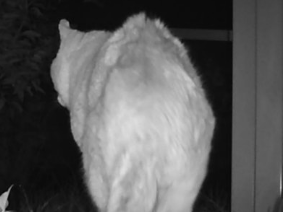 5月3日か4日、自宅の庭に設置しているトレイルカメラに初めて姿を現す。