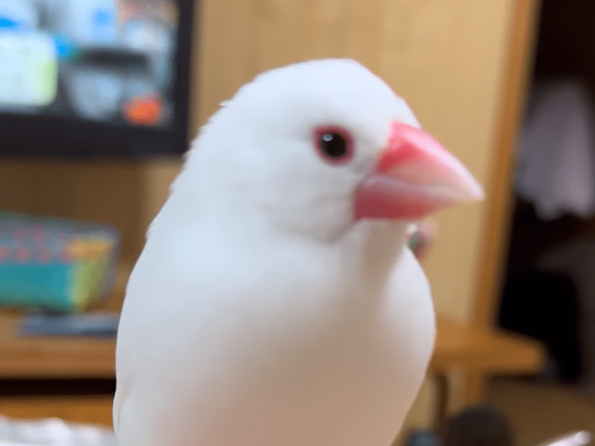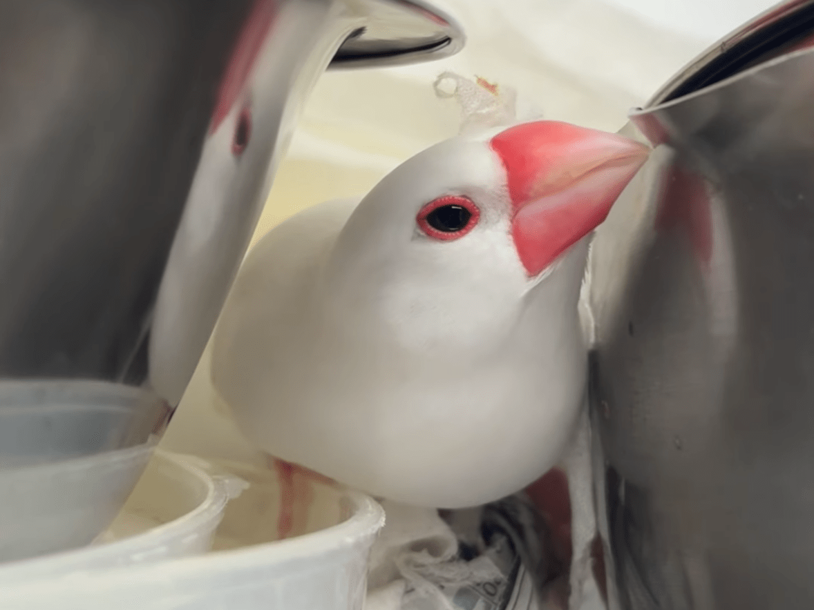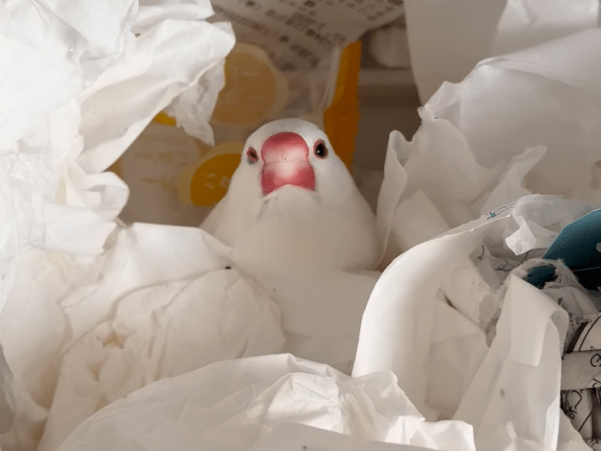 羽の生え替わりでお尻の羽がまばらに生えています。