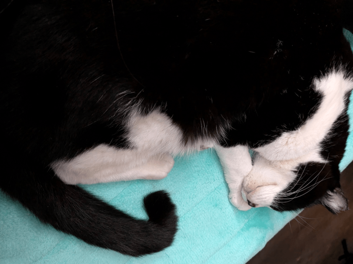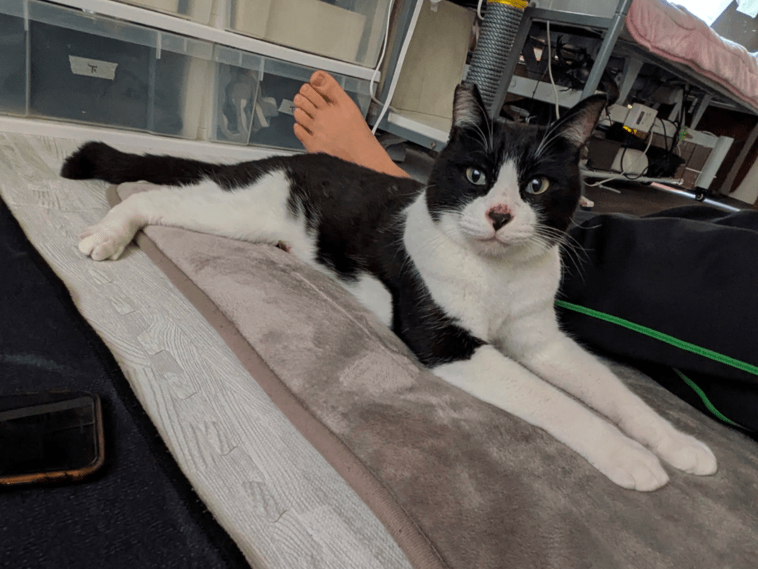 シロクロハチワレ鍵しっぽ。人懐っこいです