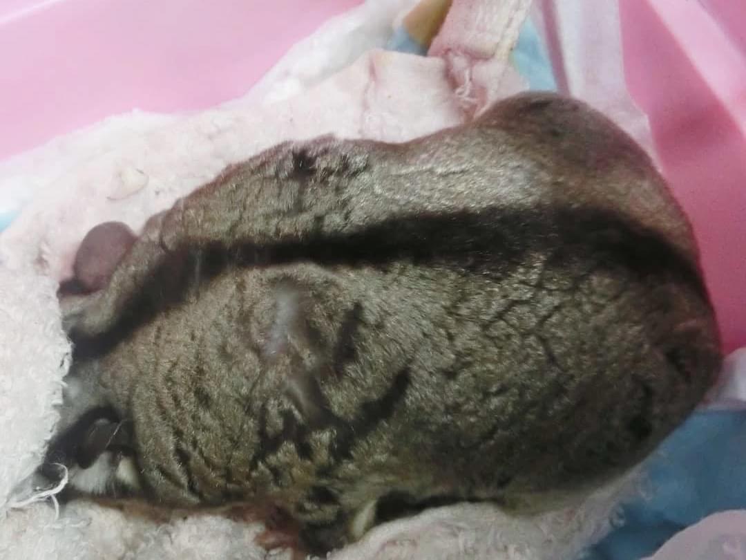 7年4月23日に江東区大島4-1の路上にて保護されたオス♂のフクロモモンガ1匹。5月2日から警視庁城東警察署より当施設「シェルター小さなおうち動物園」でお預かりしております。