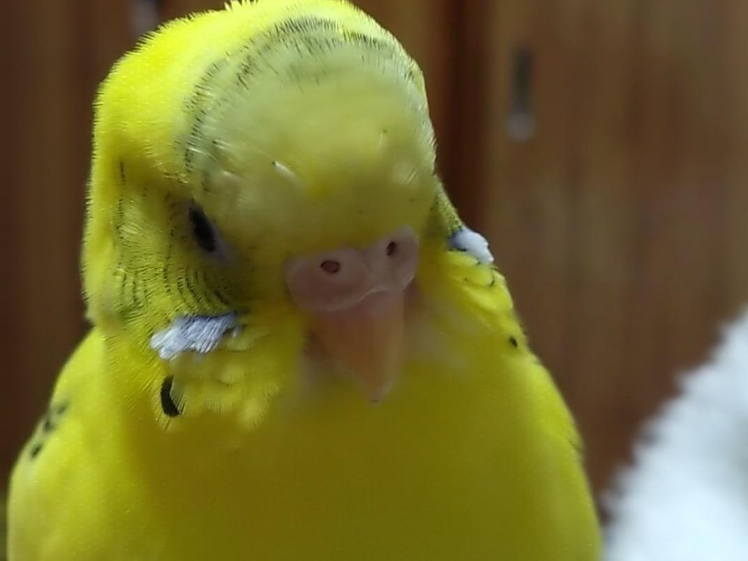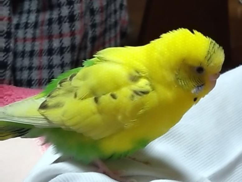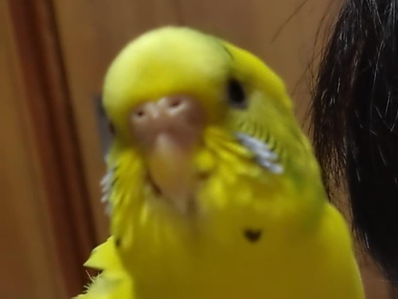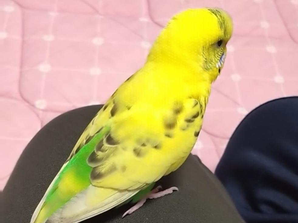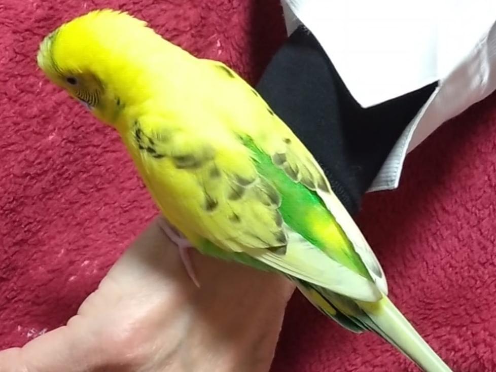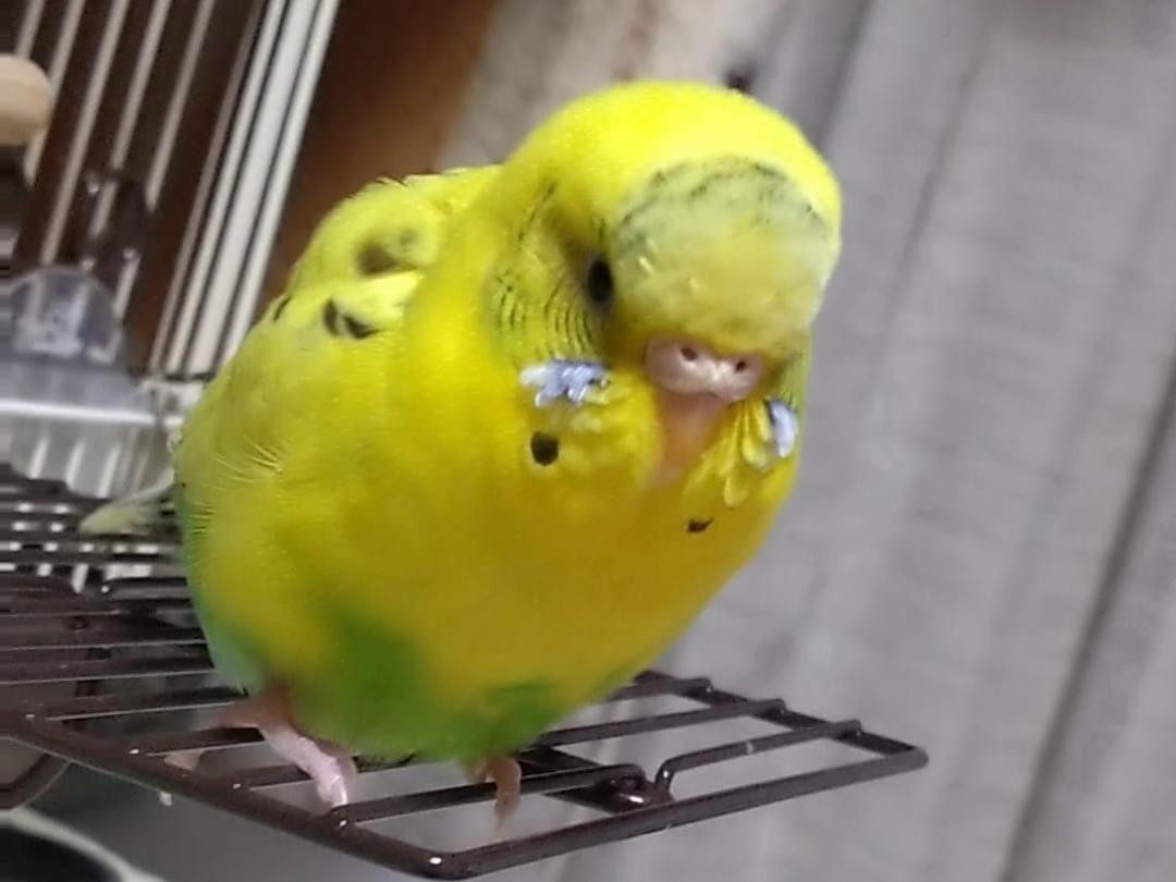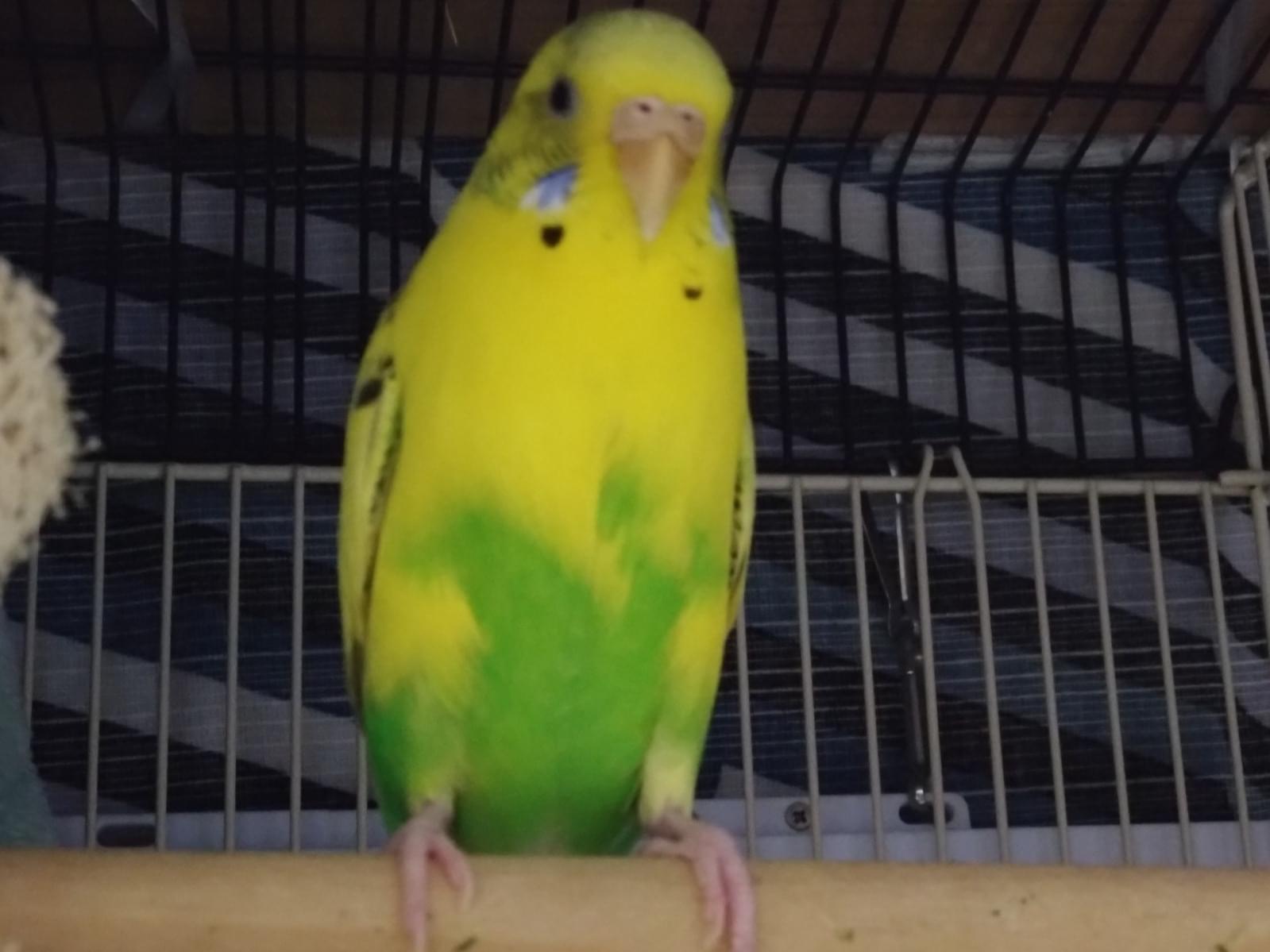 頭に黒線のある黄色と緑のセキセイインコを探しています