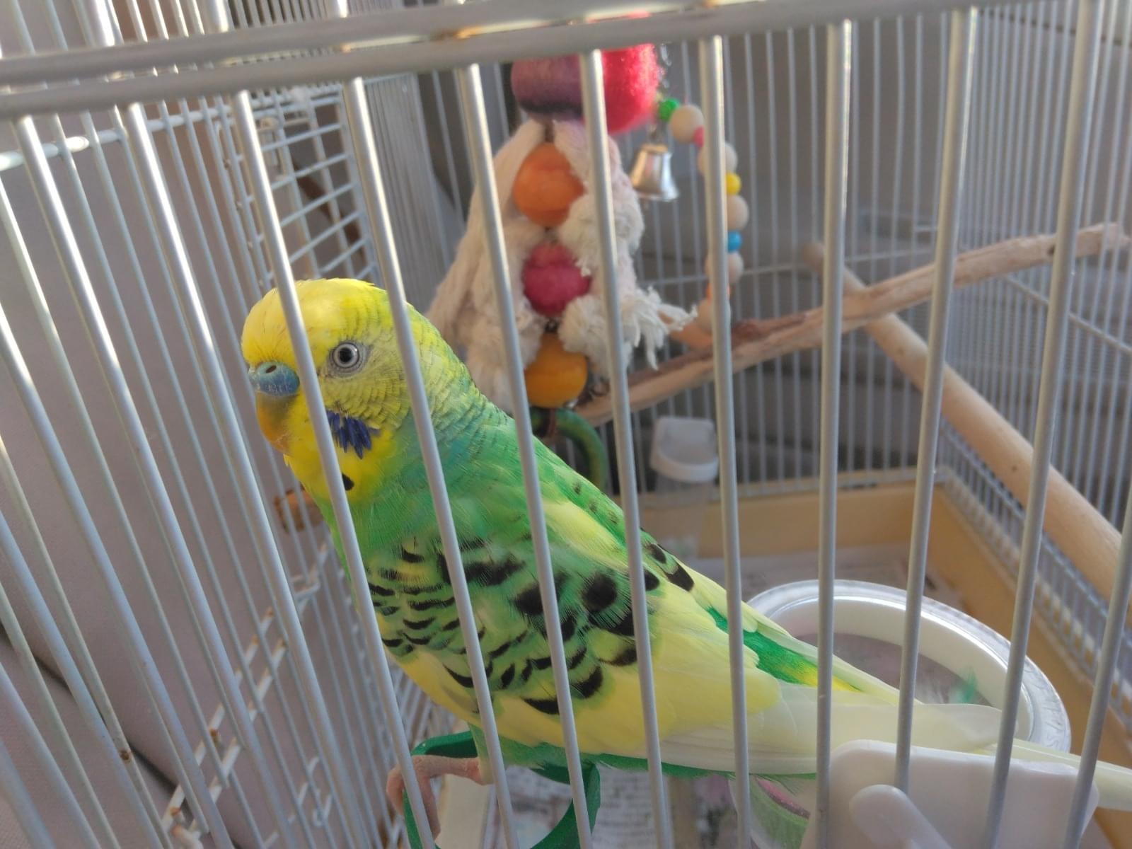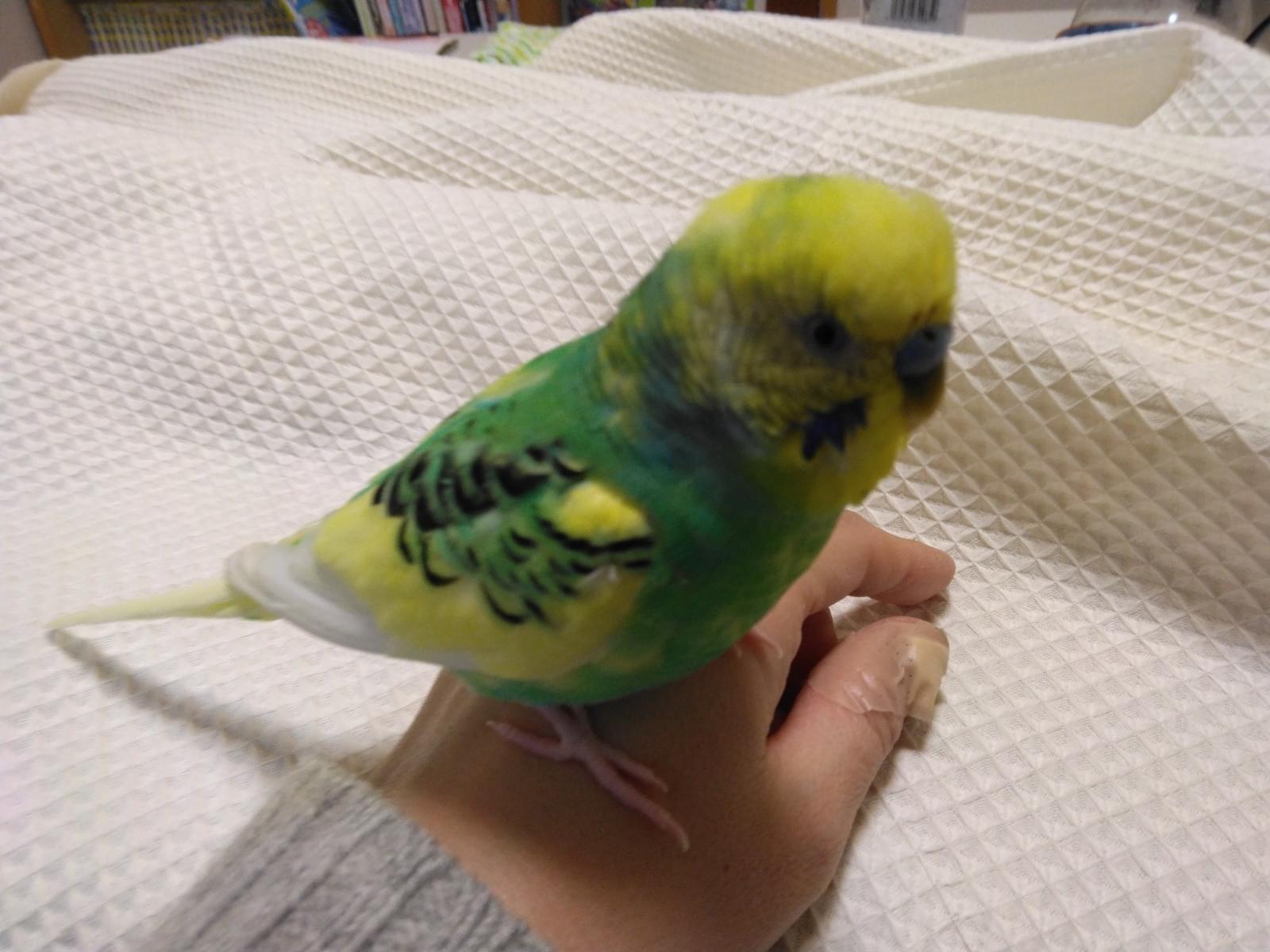 黄緑色のセキセイインコです。