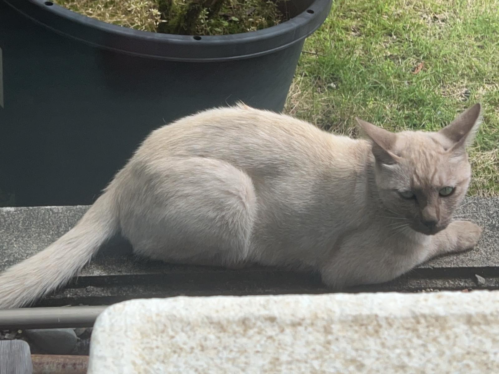 首輪の後があったので、飼い猫ちゃんだと思います。