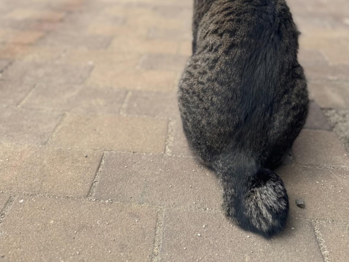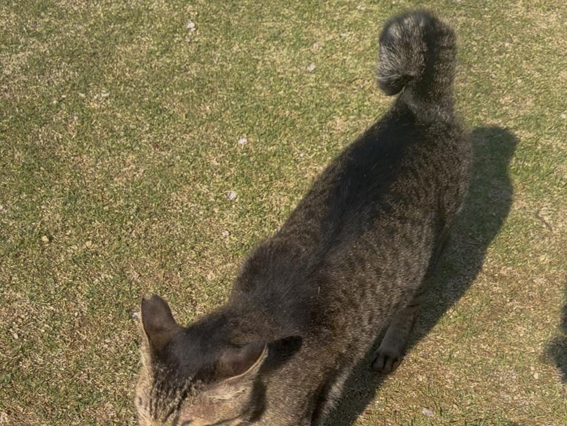 さくら猫で 尻尾が丸まった短い鍵シッポで