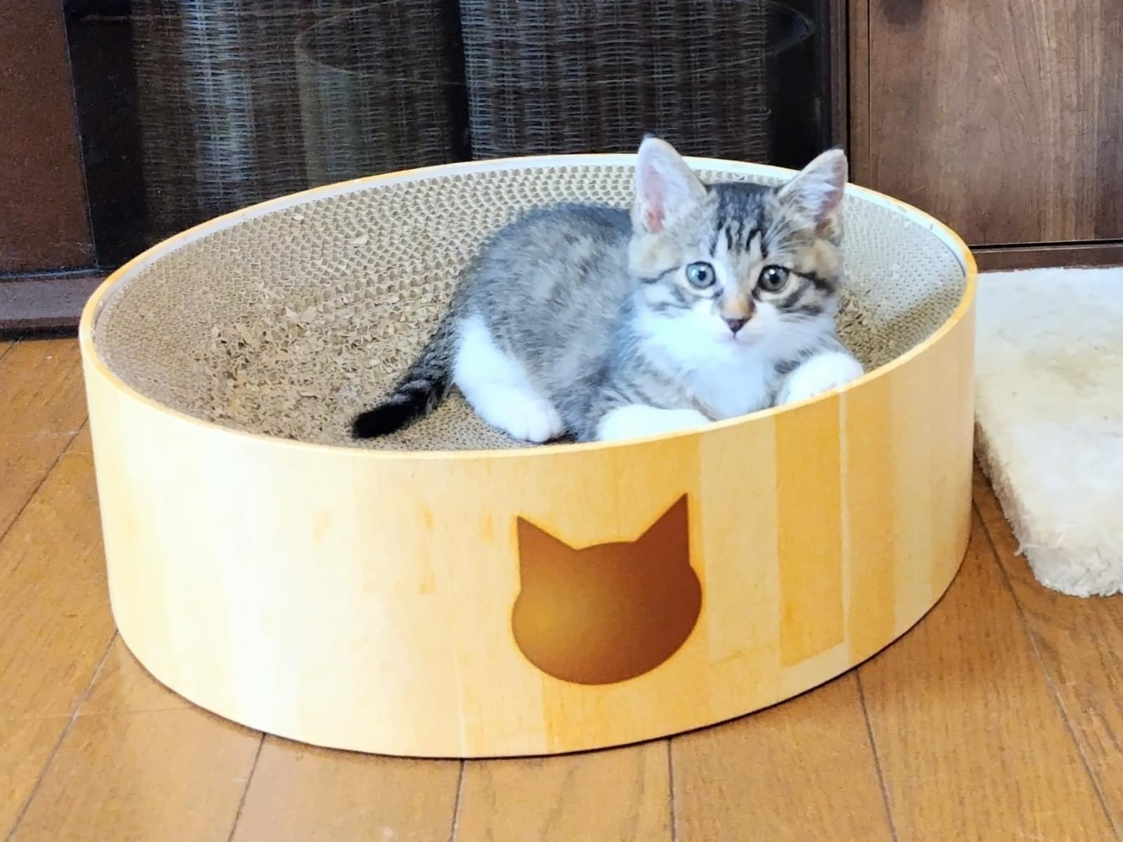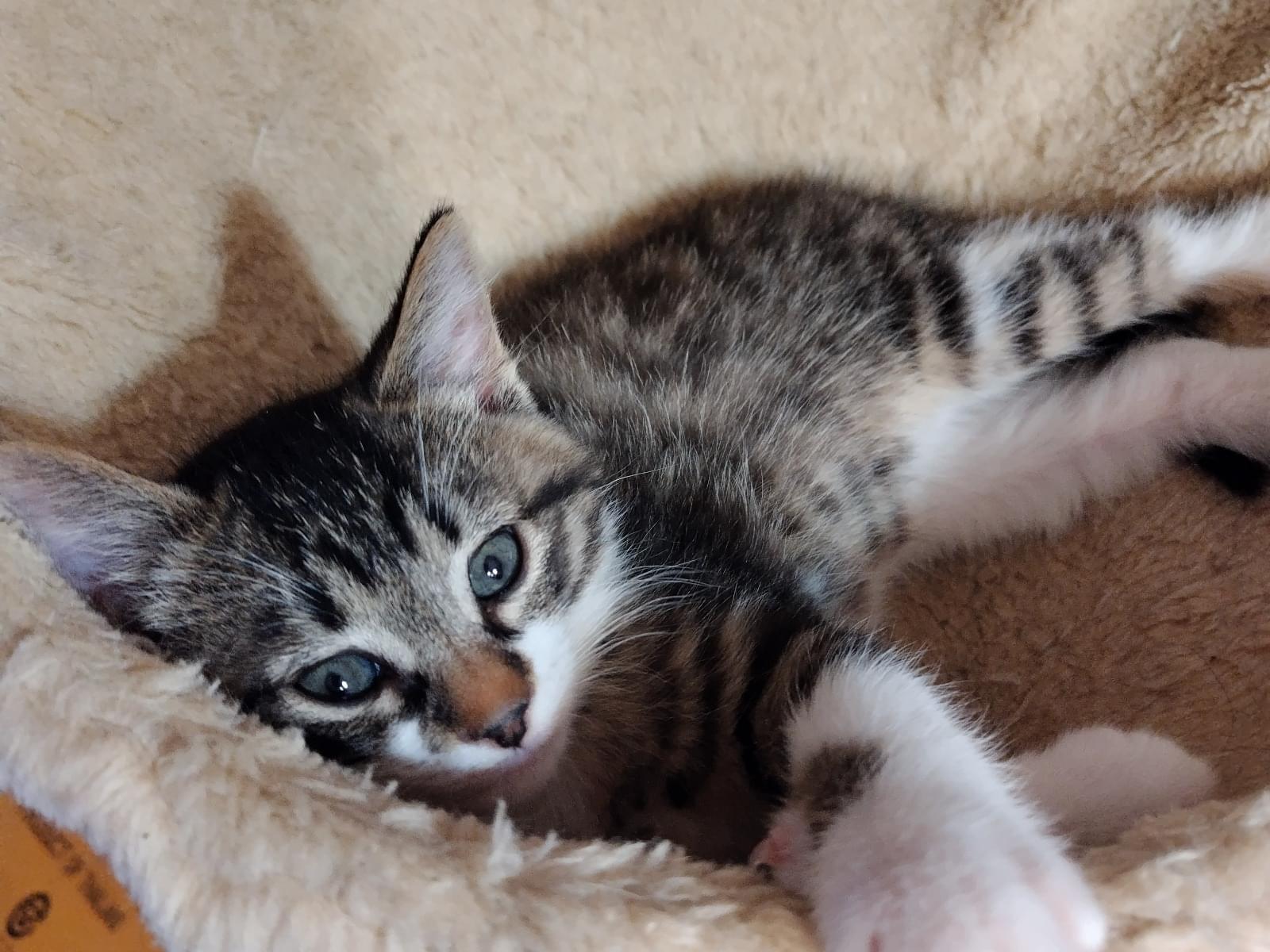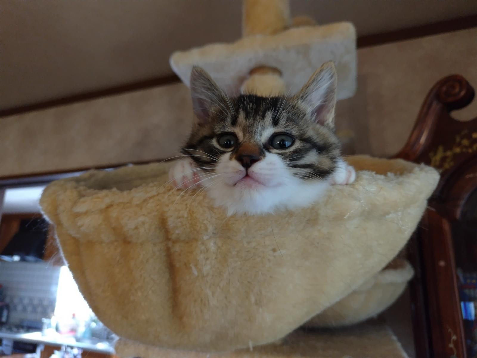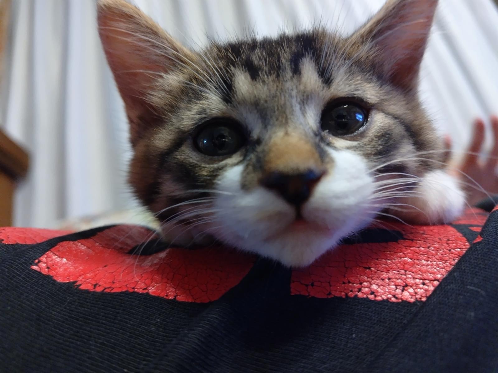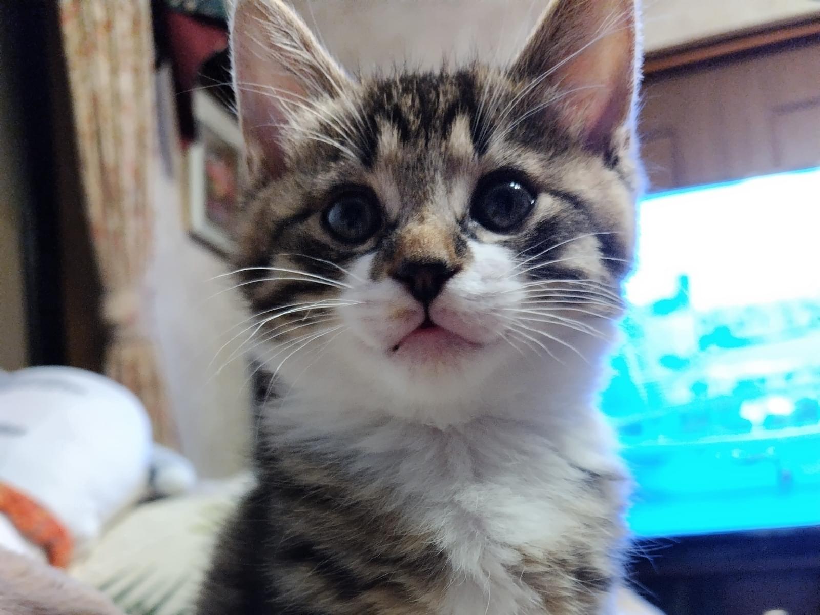キジトラで丸顔のオスの子猫です。いちくんと呼ぶと返事をしていました。