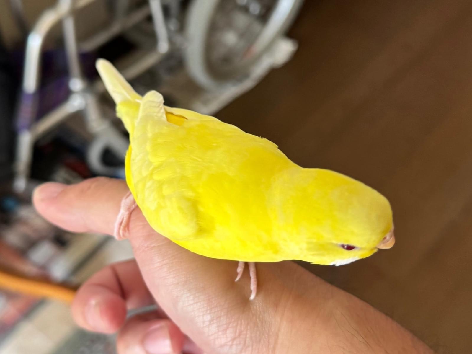 2025年5月21日13時30分頃、神奈川県平塚市長持で、外に止まってるルチノーのセキセイインコを保護しました。