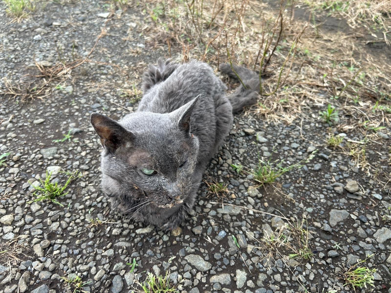 ロシアンブルー?でかなり痩せた高齢猫を見かけました