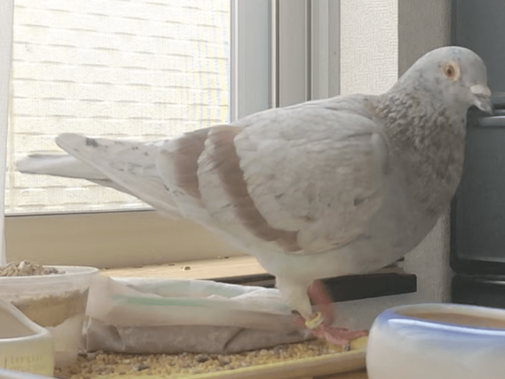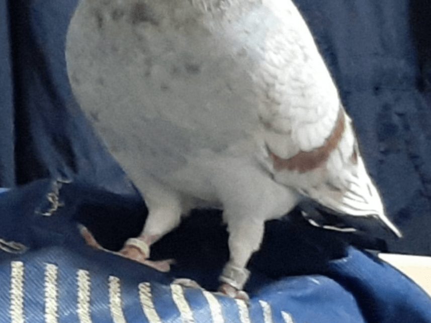 鳩レース協会のレース鳩と同じ足輪をつけています。