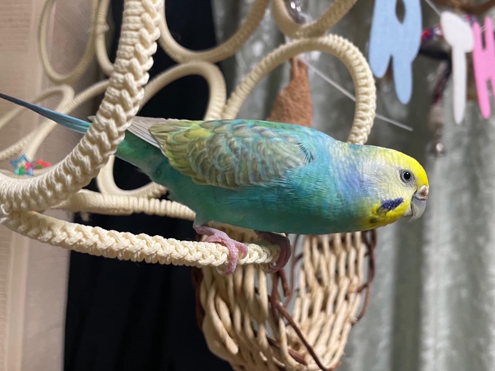 水色で羽根に黒い斑点模様のあるセキセイインコを探しています