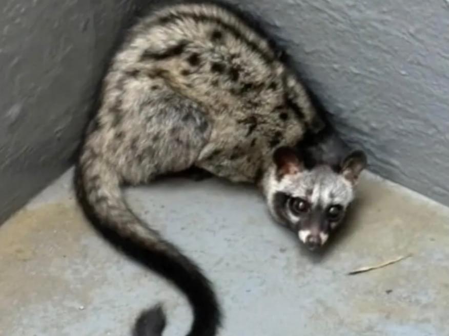 パームシベットという動物が、飼い主の不注意で自宅の窓を突き破り逃げてしまいました。
