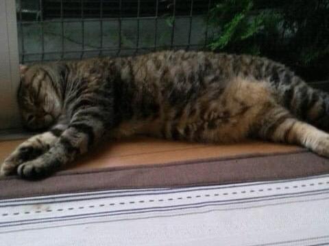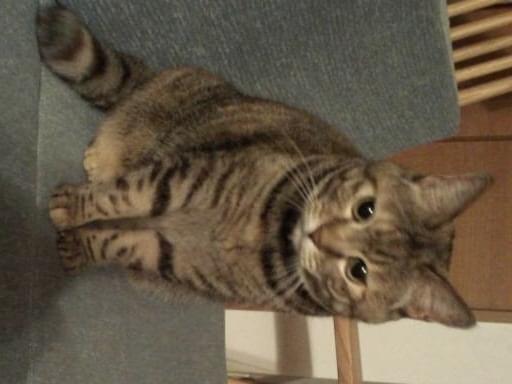 濃い茶色と薄い茶色が混ざった感じの色合いのキジトラです。